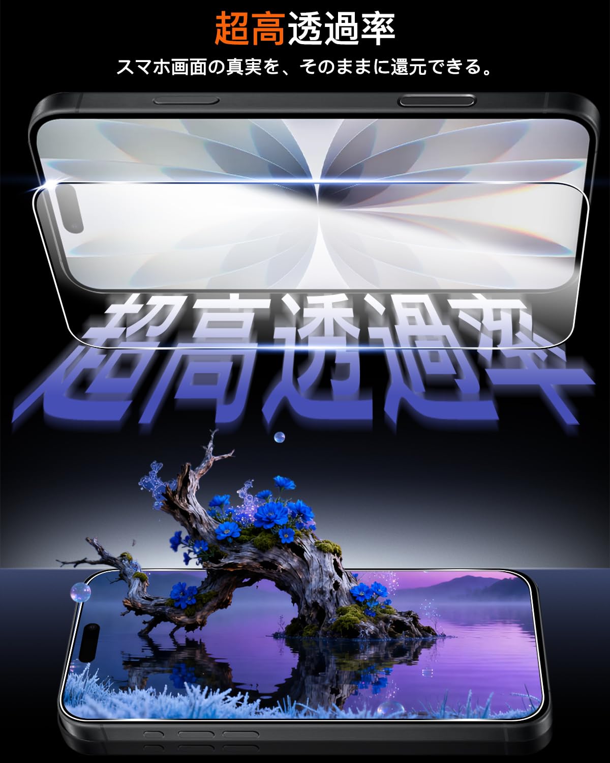 * 【高透過率 高タッチ感度】用 アイフォン17 フィルム スマホ 新しくアップグレードした光学プロジェクション技術を使用して、ガラスフィルムの透過率は99.9%に達し、より高い光透過率があり、超クリアな視覚体験を与えます。裸画面の視覚感があるので、映画を見るか、ドラマを見ても、効果は非常に優れます。また、本体の縁にスペースを残すデザインを取っており、ほどよいサイズ感で、液晶画面を覆いながら、スマホケースと干渉せず併用できます。フィルムは0.33mmのゴールデン厚さを設計し、指紋ロック解除 などのタッチが敏感で、正しく連続的なタッチ使用体験を確保します。使い心地が良くなるだけでなく、頑丈さも増し、見た目もより良くなる点がメリットとして挙げられます。