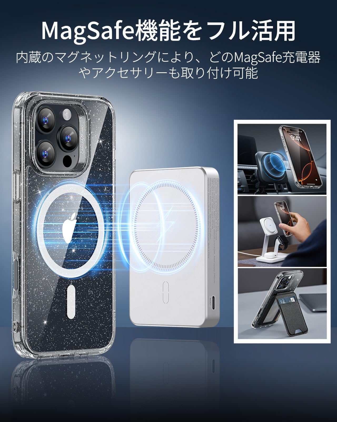 * 【より強力なマグネットロック】1,500gの保持力を持つ強力な内蔵マグネットは、より速く、より簡単な瞬間吸着ワイヤレス充電を可能にし、あらゆるMagSafeアクセサリーに安全なロックを提供します。対応機種:iphone16pro ケース