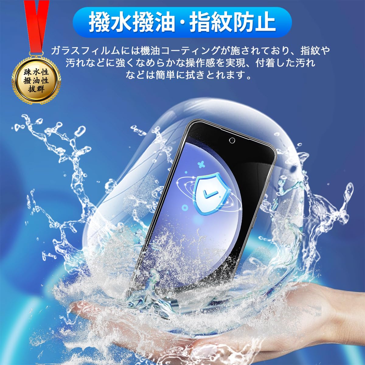 * 【撥水撥油・指紋防止】 対応 ギャラクシー S23 FE 保護フィルム 採用して AFコーティングにより保護フィルムの表面に撥水撥油防汚機能を付与しており、指紋や汚れの跡が画面に付きにくく、きれいな状態に維持されます。改良されたコーティング加工により、指紋などがつきにくく、画面がなめらかとなり快適な操作することができます。(付着した指紋、水滴、汗、化粧品などは簡単に拭き取れます)