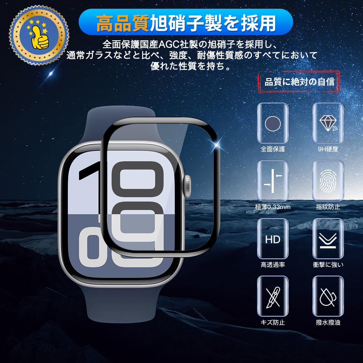 * 【撥水撥油・指紋防止】 対応 Watch Series10 42mm 保護フィルム 採用して AFコーティングにより保護フィルムの表面に撥水撥油防汚機能を付与しており、指紋や汚れの跡が画面に付きにくく、きれいな状態に維持されます。改良されたコーティング加工により、指紋などがつきにくく、画面がなめらかとなり快適な操作することができます。(付着した指紋、水滴、汗、化粧品などは簡単に拭き取れます)