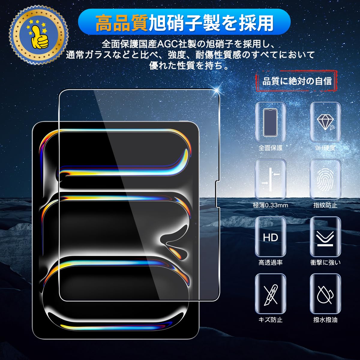 用 iPad Pro 13 インチ (M4) (2024) ガラスフィルム 2枚 【国産AGC旭硝子素材】 用 iPad pro 13 (2024モデル) M4 フィルム 硬度9H 用 iPad Pro 13インチ タブレット 保護フィルム 耐衝撃 用 iPad Pro (13インチ) (M4) 液晶 ガラス フィルム 全面保護 高透過率 超薄型 自動吸着 気泡なし 簡単貼り付け ケースに干涉なし