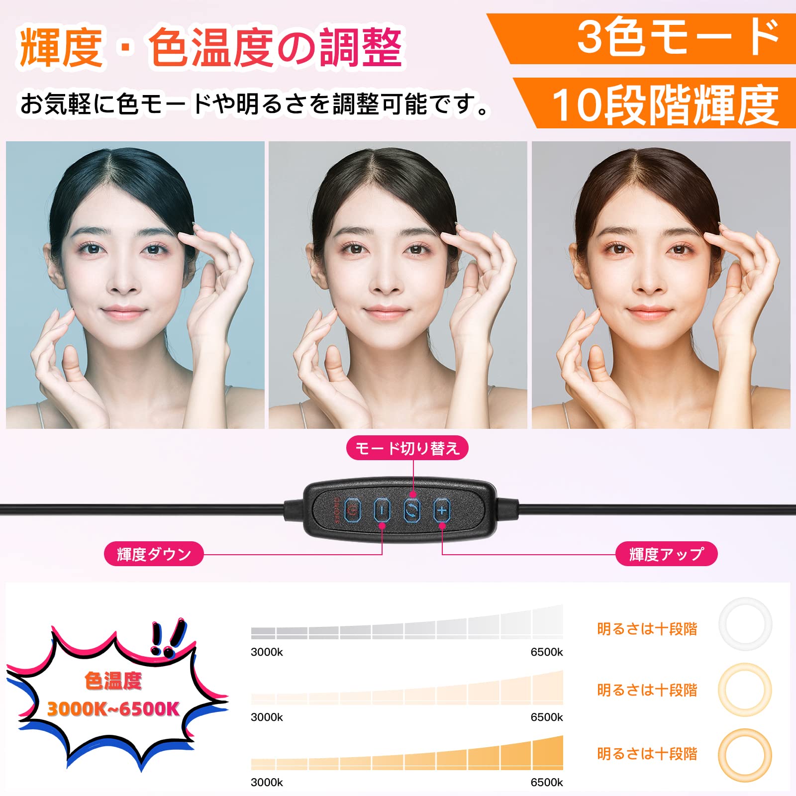 【ライト・ZOOM・ビデオ会議・テレワーク用】リングライト 8インチ 卓上スタンド 高さ調整可能 3色モード・10段階調光 1500ルーメン USB給電 美肌ライト・美容・配信・オンライン授業対応