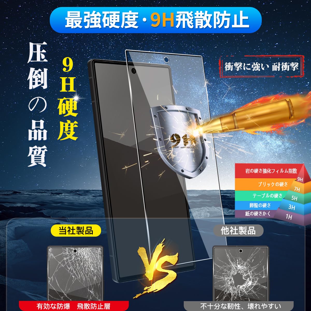 * 【国産AGC旭硝子ガラス素材 業界最高品質 硬さ9h】ガラスは硬すぎると、割れやすいです。商品は一枚一枚手作業で検査しましたので、品質は非常に安定しております,弊社のガラスフィルムは業界最高レベルの9h硬さに達しました。4.5時間以上の高温焼入れ処理を行い、スクリーンプロテクターの圧強度は125mpaに達し、通常のガラスの5 倍になりました。しかもスクリーンプロテクターは衝撃を抑えるシリコンコーティングしており、SCL緩衝層を搭載し、伝わる衝撃力を瞬時に分散させ、万が一ガラスが割れても、ガラスの破片が飛散しなく、怪我されません。