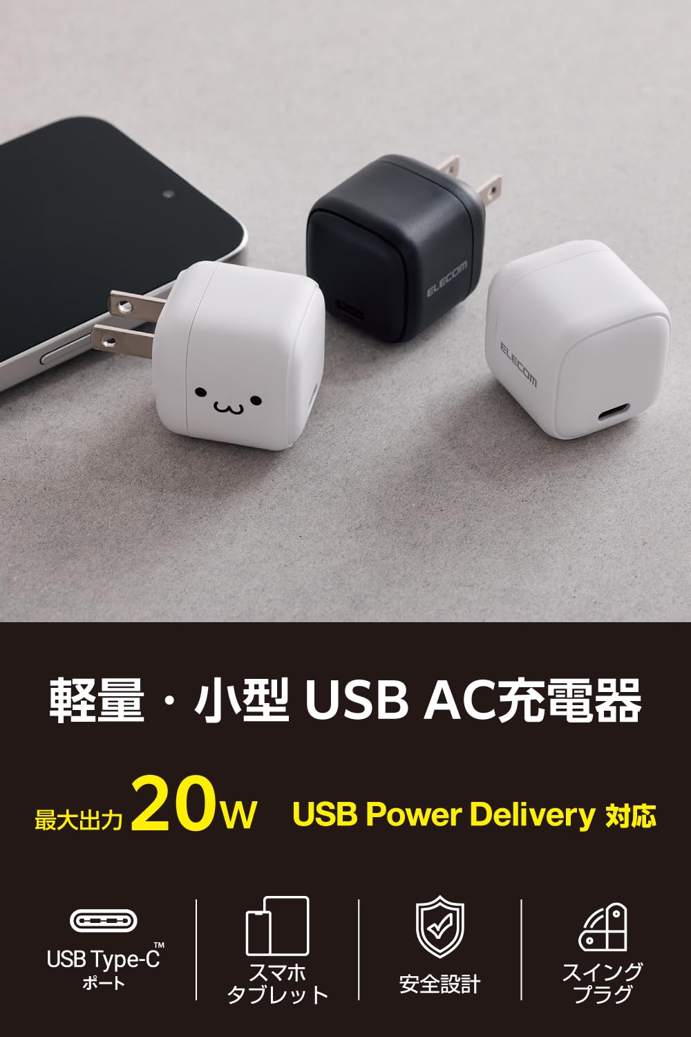 エレコム 充電器 Type-C 20W USB PD対応 USB-C 1ポート 折りたたみ式プラグ PSE認証 【 iPhone 16 15 OPPO Pixel など各種対応】 ブラック EC-AC7320BK