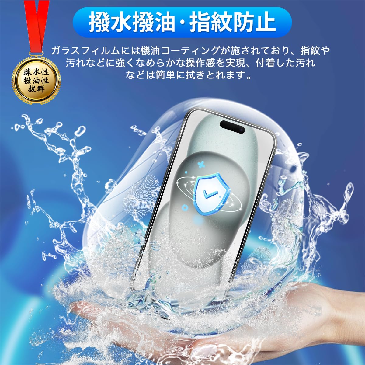* 【撥水撥油・指紋防止】 対応 いpほね15 保護フィルム 採用して AFコーティングにより保護フィルムの表面に撥水撥油防汚機能を付与しており、指紋や汚れの跡が画面に付きにくく、きれいな状態に維持されます。改良されたコーティング加工により、指紋などがつきにくく、画面がなめらかとなり快適な操作することができます。(付着した指紋、水滴、汗、化粧品などは簡単に拭き取れます)