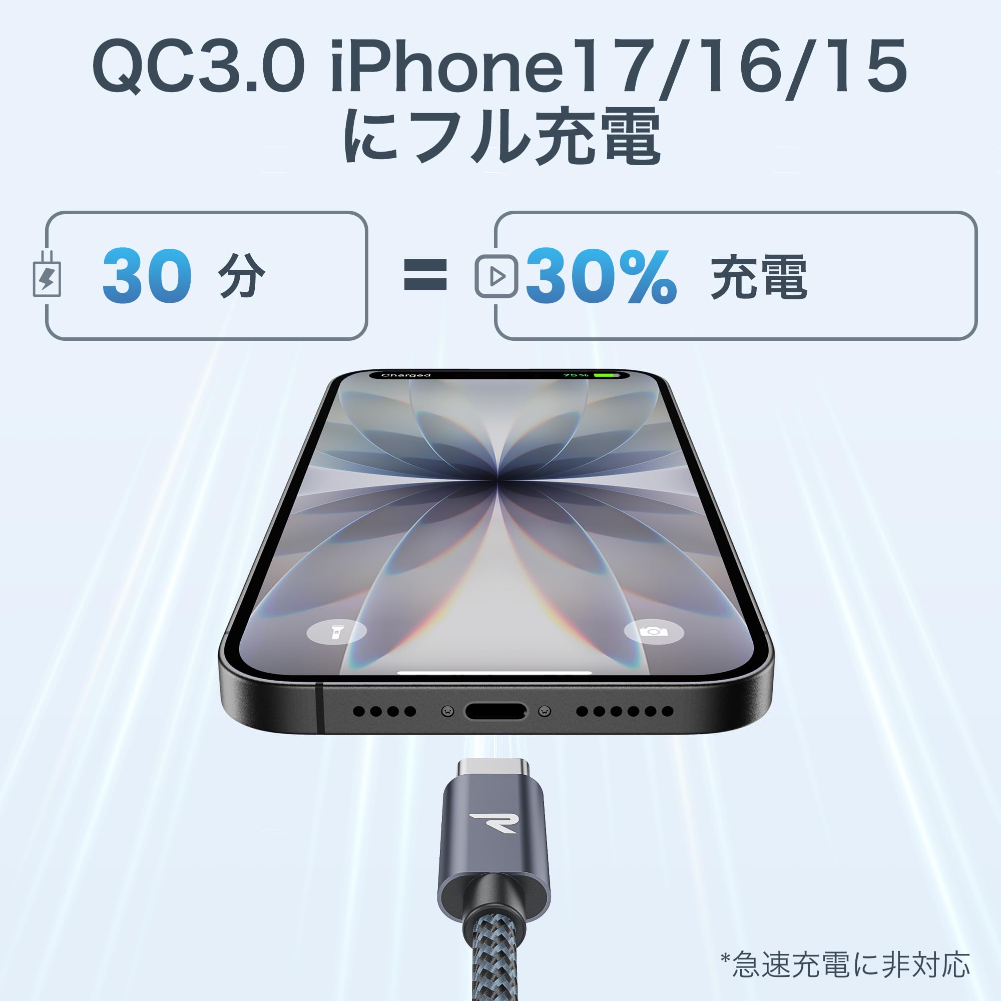 * 【快適なQC3.0急速充電】️️iPhone 17/16/15シリーズのスマートフォンを充電する場合、充電電力は12Wで、急速充電には対応していません。当社のUSB CケーブルはQuick Charge 3.0に対応し、3.6V〜20V/3Aの高速充電が可能です。お使いのスマートフォンやタブレットなどのデバイスを短時間でフル充電し、貴重な時間を節約できます。急いでいる時でも便利で利用できます。USB2.0基準、最大480Mbpsのデータ転送速度をサポートし、1GBのファイルを数秒間で転送完了します。