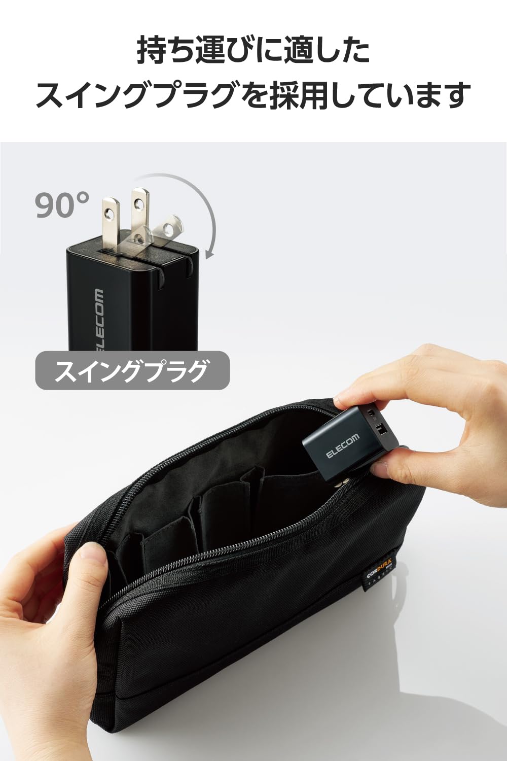 * USB Type-C(TM)ポートとUSB-Aポートの合計2ポートを搭載し、対応するスマートフォン、タブレットなどを充電できるUSB AC充電器です。