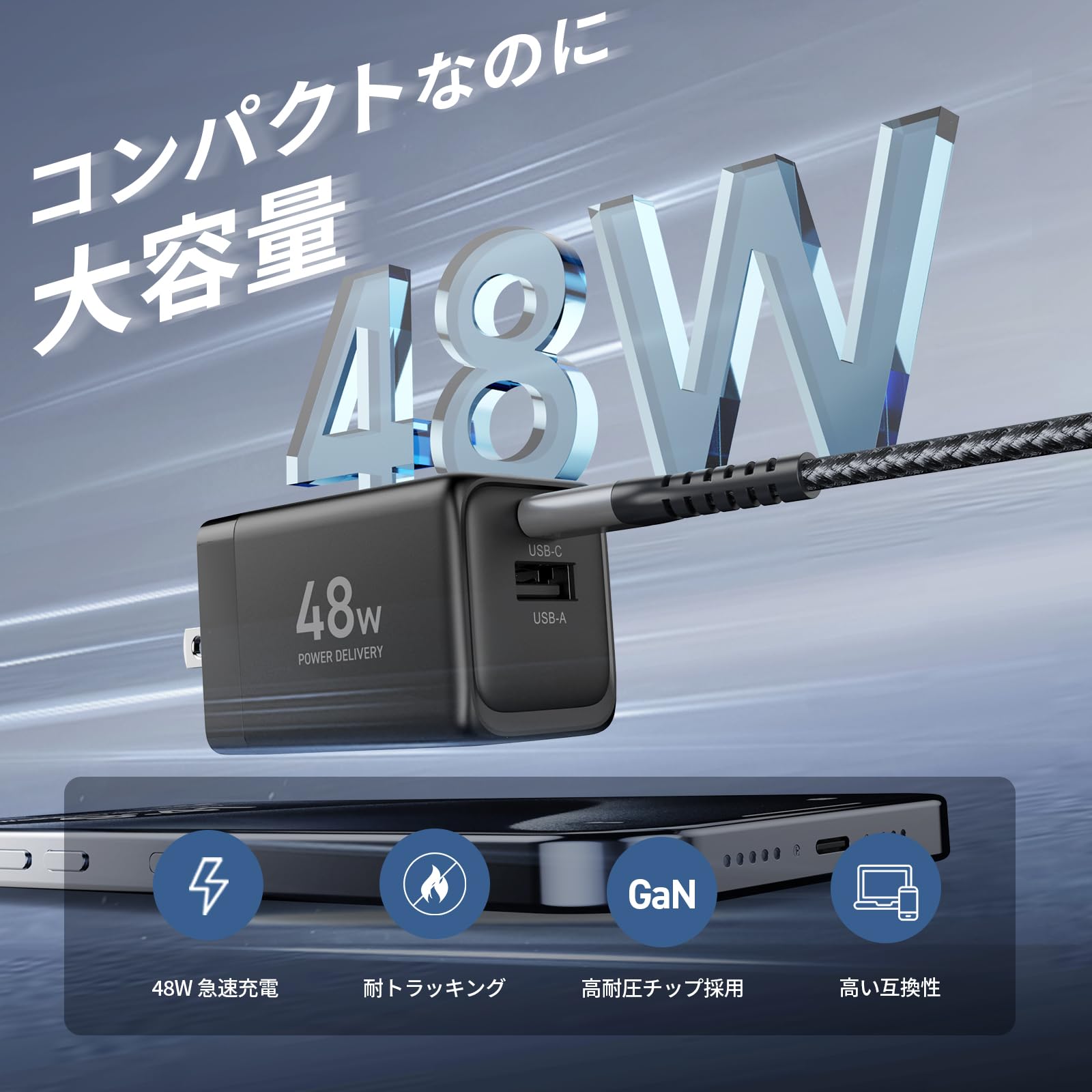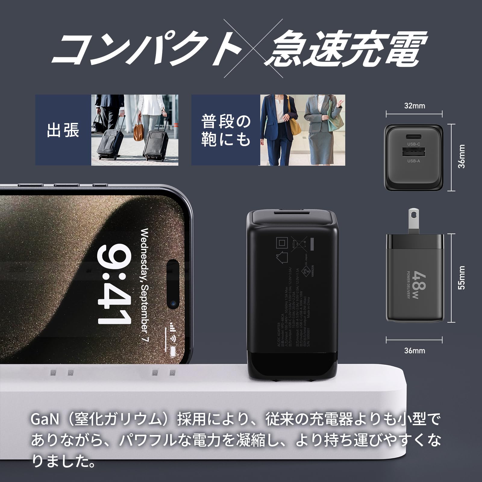 * 【どこでもスマートにパワフル充電】80gのコンパクト設計なので、自宅の限られたスペースやカフェのコンセントでも場所を取らず、スマートに充電が可能。パワフルなMAX48W出力で、あなたのデジタルライフを強力にサポートします。