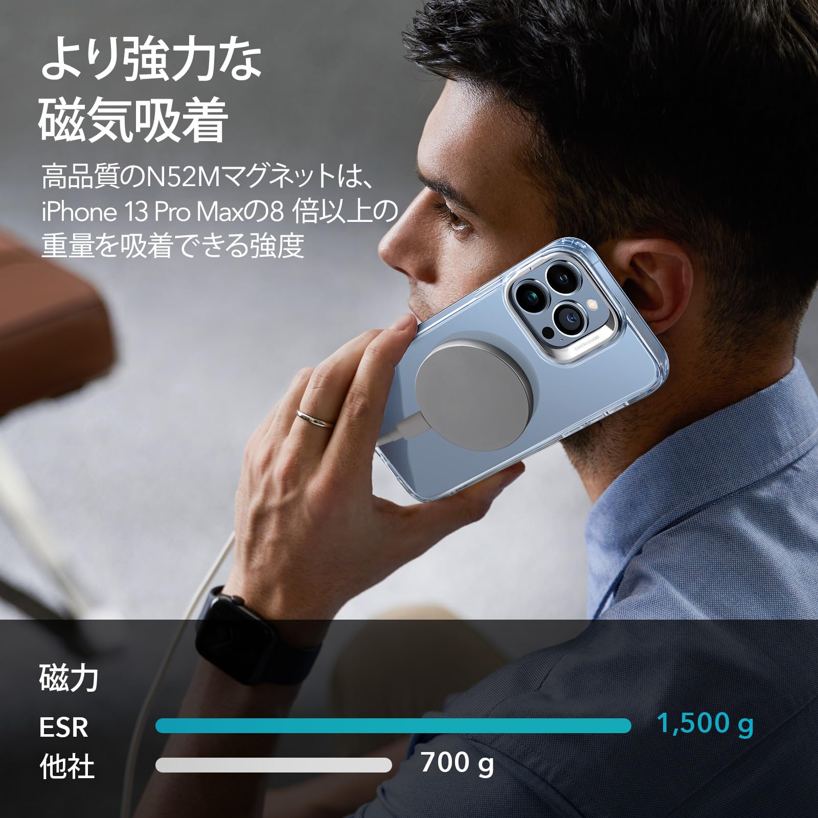 * 【より強力な磁気吸着】1,500 gの吸着力を持つ強力な内蔵磁石により、HaloLock または MagSafe アクセサリーを確実に固定