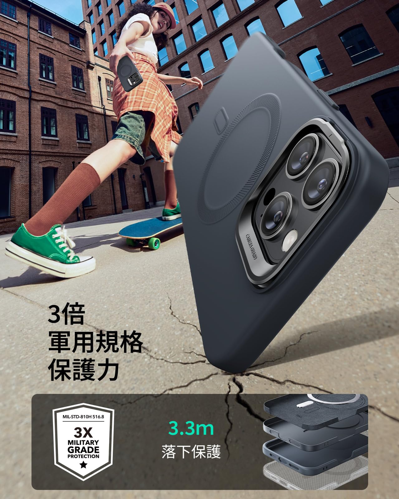 * 【角度調整可能な隠れスタンド】カメラフレームを囲むように配置され、最大角度82度、折りたたんだ際にMagSafeリングが100%邪魔されることなく隠れます。いつでも、どこでも、自由に調整でき、安定したビューで画面を楽しむことができます。対応機種:iphone16pro ケース