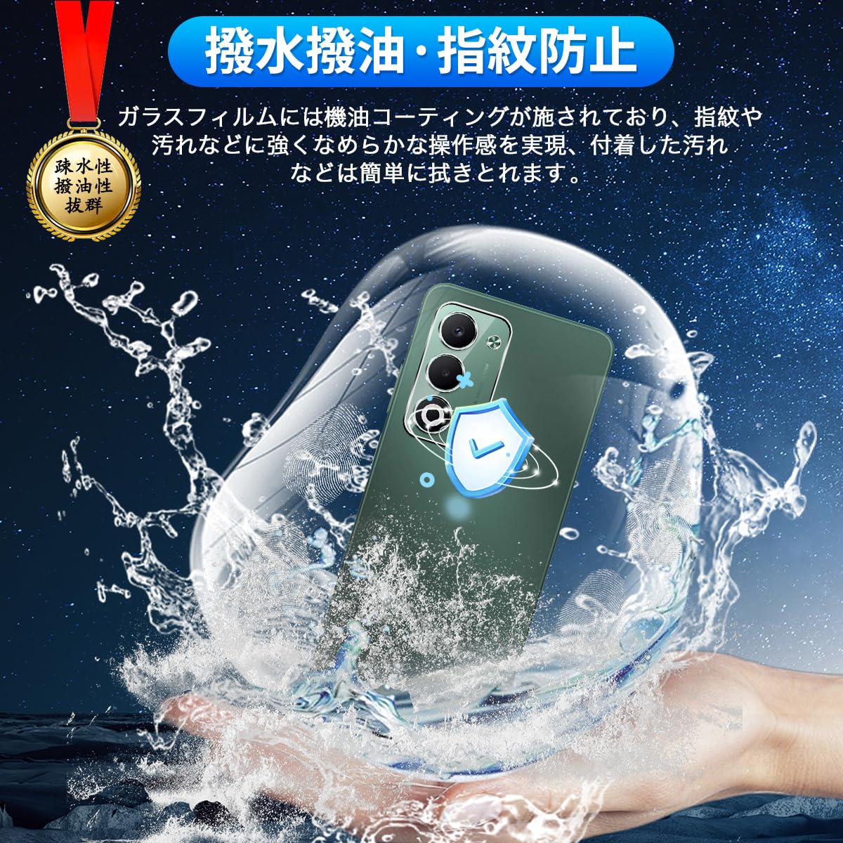 * 【撥水撥油・指紋防止】 対応 OPG06 レンズ 保護フィルム 採用して AFコーティングにより保護フィルムの表面に撥水撥油防汚機能を付与しており、指紋や汚れの跡が画面に付きにくく、きれいな状態に維持されます。改良されたコーティング加工により、指紋などがつきにくく、画面がなめらかとなり快適な操作することができます。(付着した指紋、水滴、汗、化粧品などは簡単に拭き取れます)