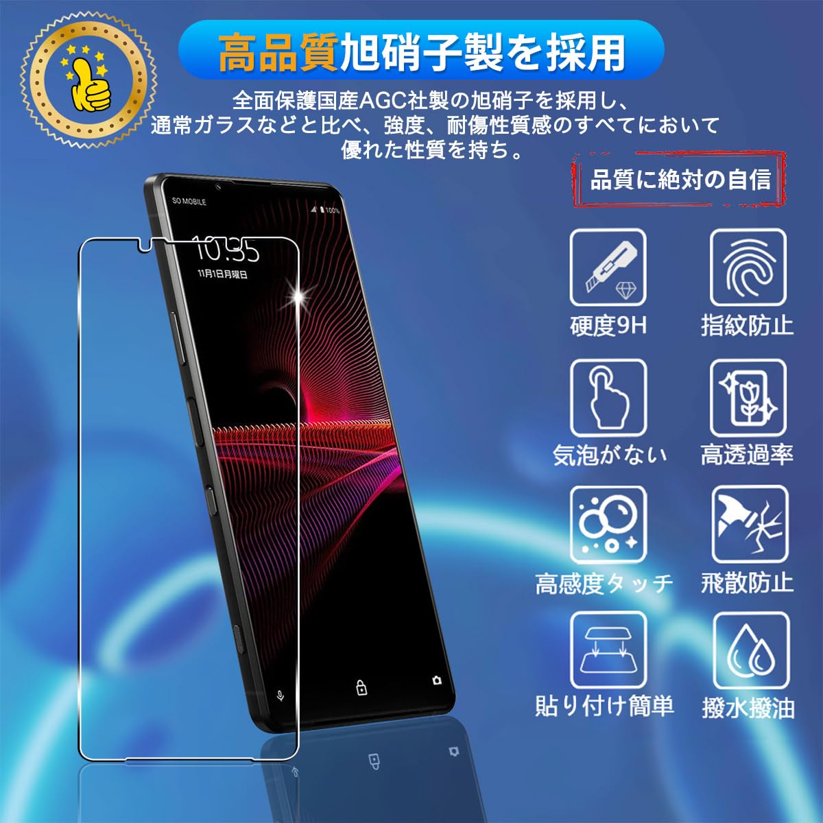 用 Xperia 1 iii ガラスフィルム 2枚 【国産AGC旭硝子素材】 対応 エクスペリア 1 III フィルム 耐衝撃 硬度9H 用 SO-51B / SOG03 保護フィルム 全面保護 用 Xperia1 iii 液晶 ガラス フィルム 高透過率 全面吸着 気泡なし 簡単貼り付け ケースに干涉なし
