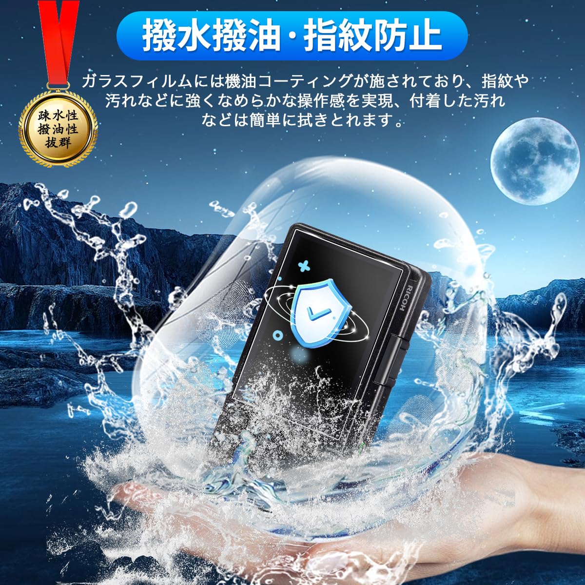 * 【撥水撥油・指紋防止】 対応 GR4 保護フィルム 採用して AFコーティングにより保護フィルムの表面に撥水撥油防汚機能を付与しており、指紋や汚れの跡が画面に付きにくく、きれいな状態に維持されます。改良されたコーティング加工により、指紋などがつきにくく、画面がなめらかとなり快適な操作することができます。(付着した指紋、水滴、汗、化粧品などは簡単に拭き取れます)