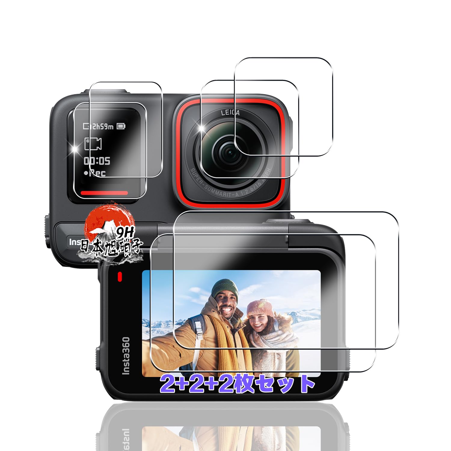 用 Insta360 Ace Pro ガラスフィルム 保護フィルム 【6枚セット 国産AGC旭硝子素材】 対応 インスタ360 ACE PRO カメラフィルム メイン画面用2枚+サブ画面用2枚+LED保護フィルム2枚 強化ガラス 硬度9H 耐衝撃 用 Insta360acepro 液晶ガラスフィルム 全面保護 高透過率 全面吸着 気泡なし 指纹·污垢防止 簡単貼り付け