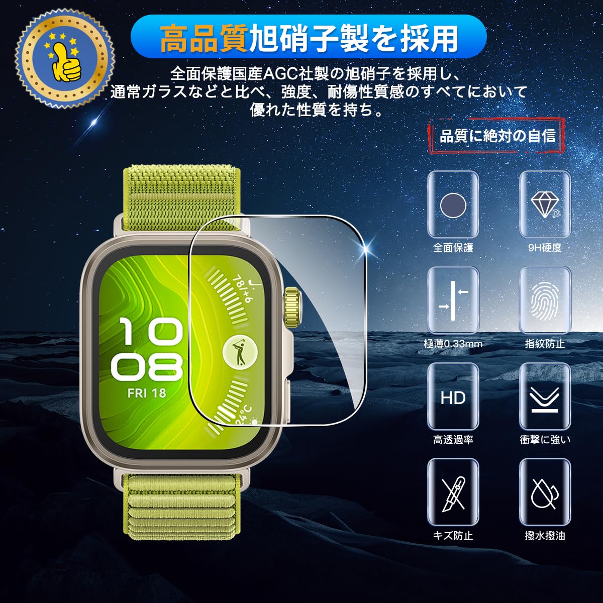 用 HUAWEI WATCH FIT 4 Pro フィルム 【3枚セット 国産AGC旭硝子素材】 用 HUAWEI WATCH FIT4 Pro ガラスフィルム 1.8.2インチ 高透過率 超薄型 用 ファーウェイ スマートウォッチ Fit4 Pro 液晶保護フィルム 耐衝撃 全面保護 飛散防止 自動吸着 気泡なし 簡単貼り付け 対応 ファーウェイ スマートウォッチFit4 Pro ガラス