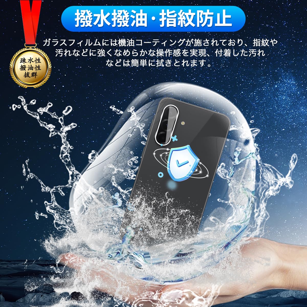 * 【撥水撥油・指紋防止】 対応 ギャラクシーA36 レンズ 保護フィルム 採用して AFコーティングにより保護フィルムの表面に撥水撥油防汚機能を付与しており、指紋や汚れの跡が画面に付きにくく、きれいな状態に維持されます。改良されたコーティング加工により、指紋などがつきにくく、画面がなめらかとなり快適な操作することができます。(付着した指紋、水滴、汗、化粧品などは簡単に拭き取れます)