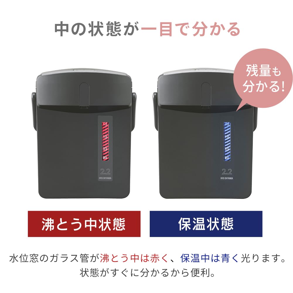 【節電対策】アイリスオーヤマ 電気ポット 2.2リットル 小型 安全ロック 空焚き防止機能 保温調整 マイコン式 アイボリー IAHD-222-C おしゃれ かわいい 2l