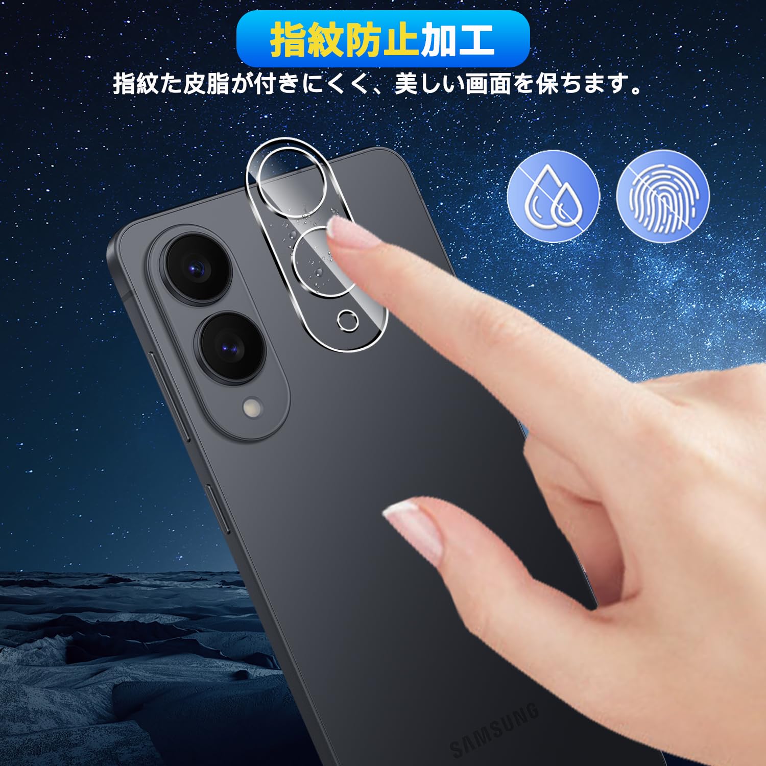 * 【撥水撥油・指紋防止】 対応 ギャラクシー S25 Edge レンズ 保護フィルム 採用して AFコーティングにより保護フィルムの表面に撥水撥油防汚機能を付与しており、指紋や汚れの跡が画面に付きにくく、きれいな状態に維持されます。改良されたコーティング加工により、指紋などがつきにくく、画面がなめらかとなり快適な操作することができます。(付着した指紋、水滴、汗、化粧品などは簡単に拭き取れます)