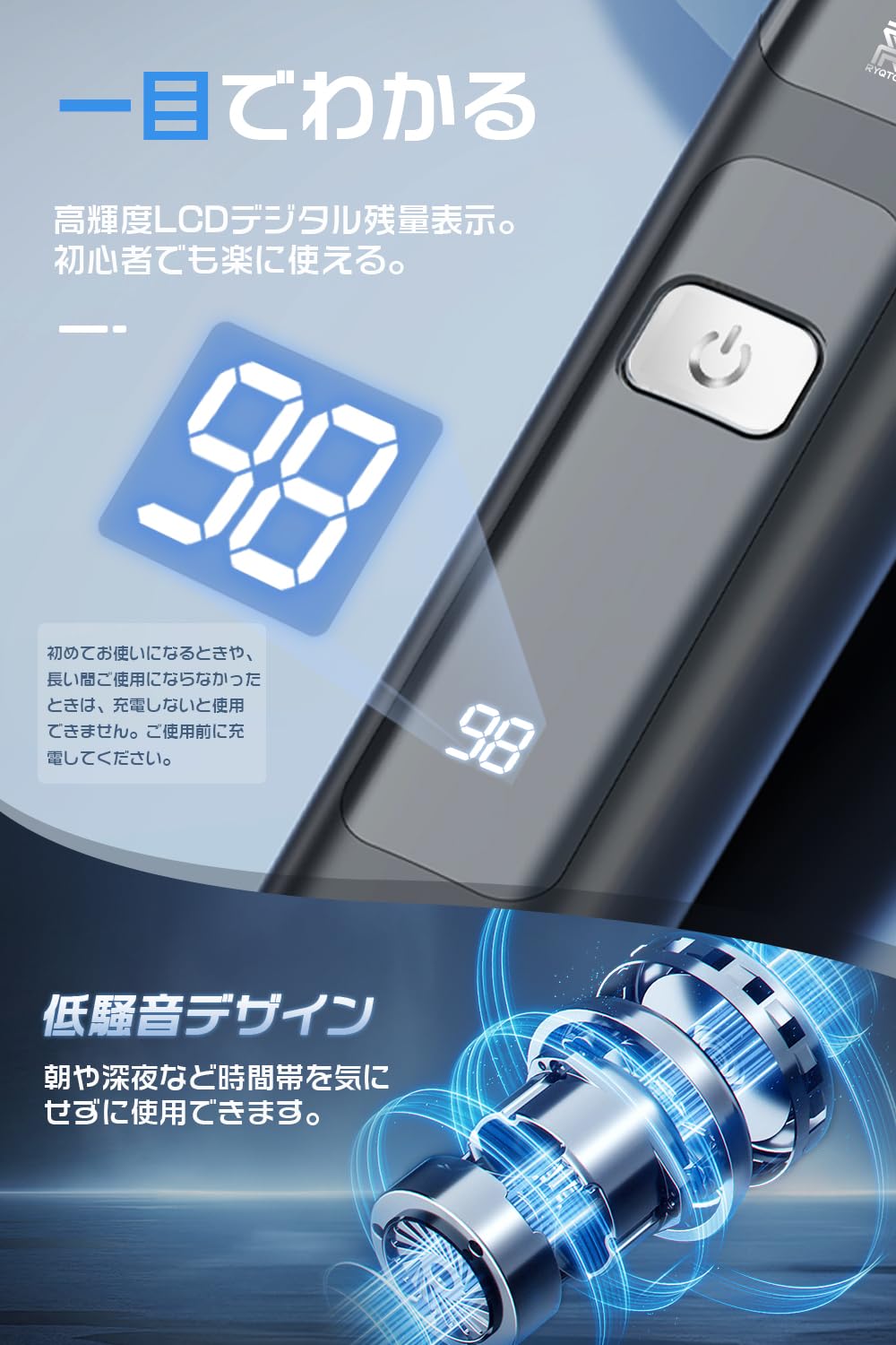 * 【LCDディスプレイ·Type-C充電】液晶ディスプレイを採用したこのシェーバー メンズは、充電の状態を視覚的に表示し、いつでも電池残量を確認できます。初心者でも簡単に操作でき、使いやすい設計です。Type-Cインターフェース付きのUSB充電ケーブルを使用して充電でき、さまざまな場所で充電できるので、出張や旅行、オフィスでも電力切れの心配はありません。小型シェーバー として非常に適しています。ご注意:洗濯時は充電端子(裏面金属接点)の浸水を厳禁とし、万一水分が侵入した場合は直ちに拭き取り完全乾燥後に充電操作を行ってください(※水濡れによる故障の原因となる恐れがあります)。