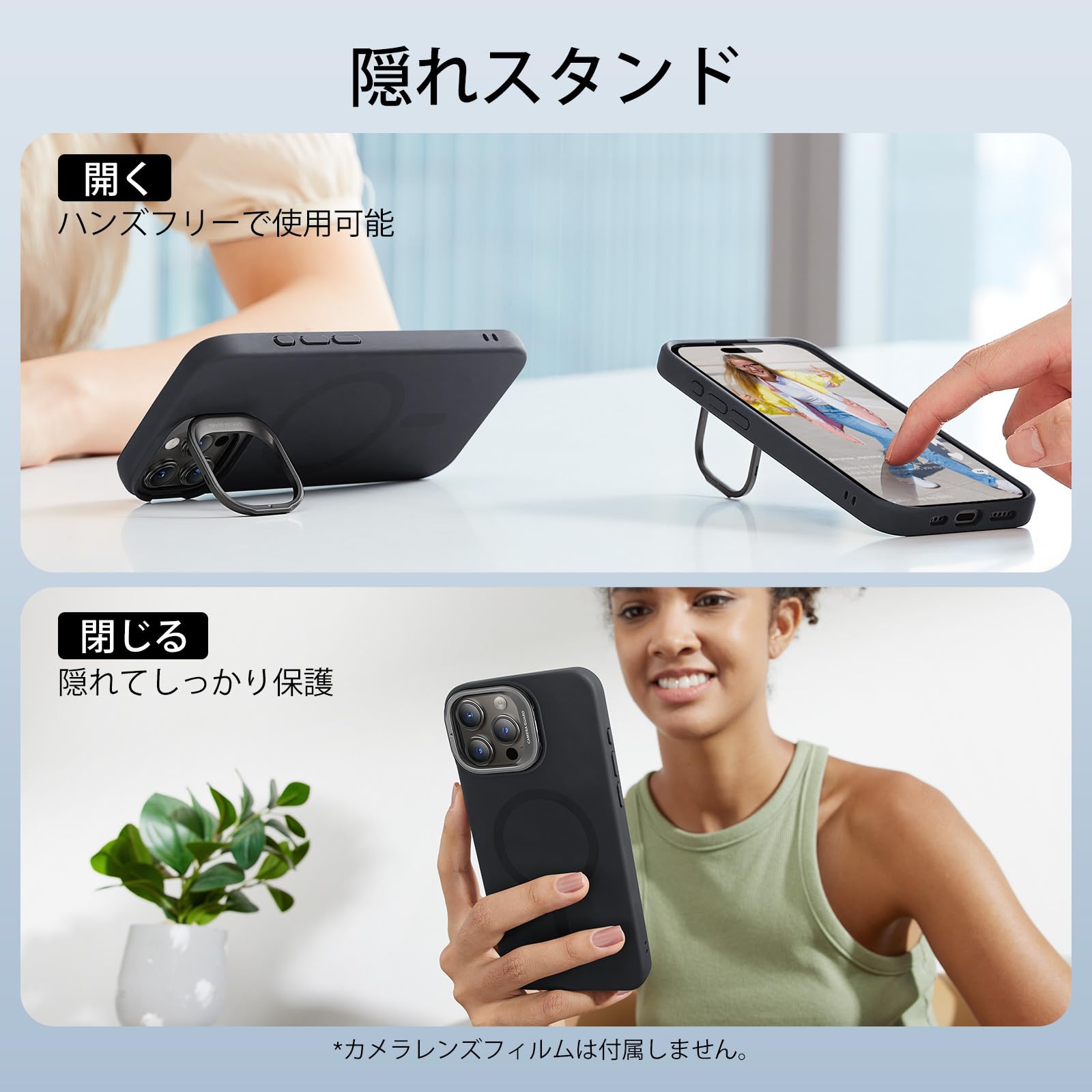 ESR iPhone 15 Pro Max ケース スタンド付き MagSafe シリコン ミリタリーグレードの保護 カメラ隠れスタンド内蔵 iPhone 15 Pro Max用マグネットスマホケース ブラック Cloud Series