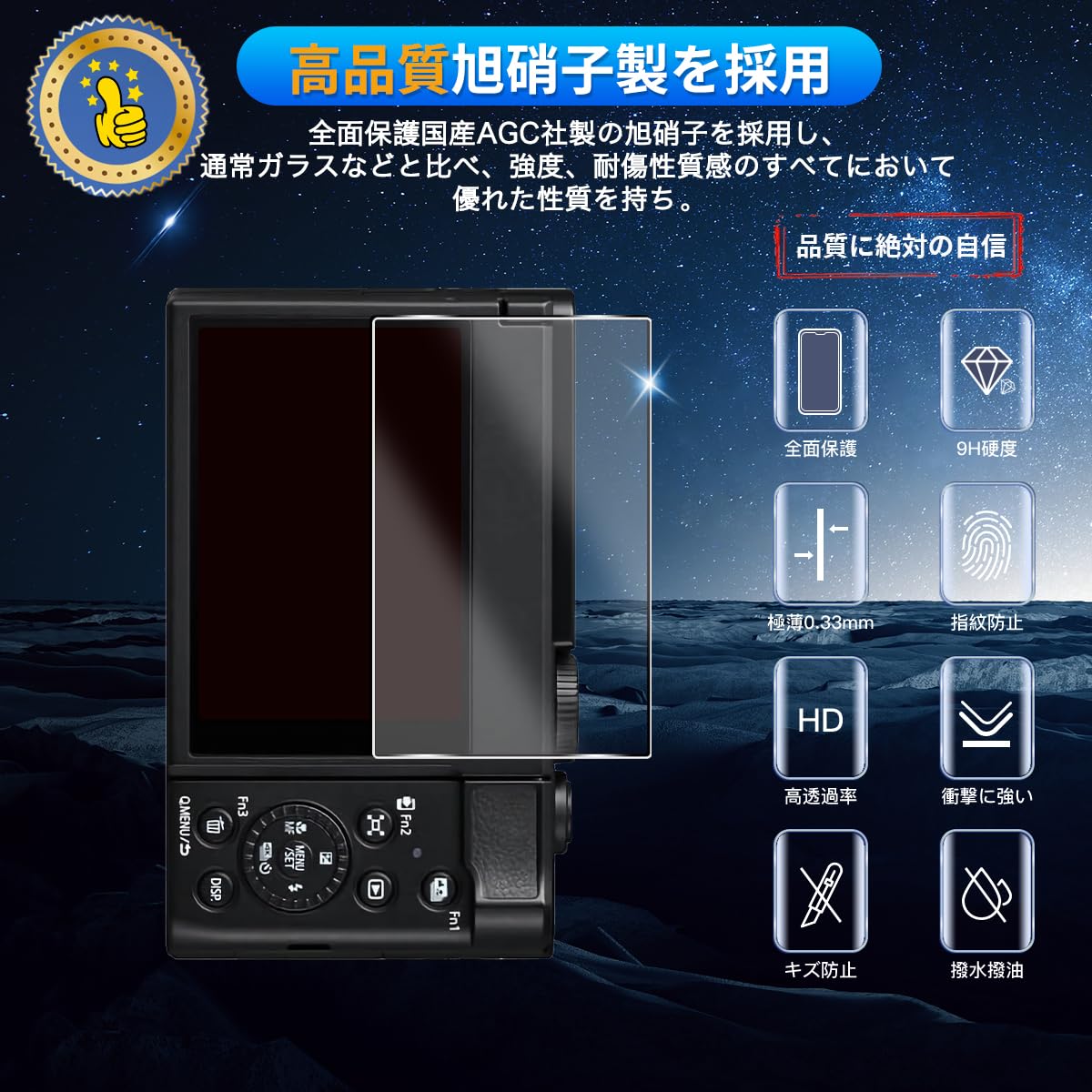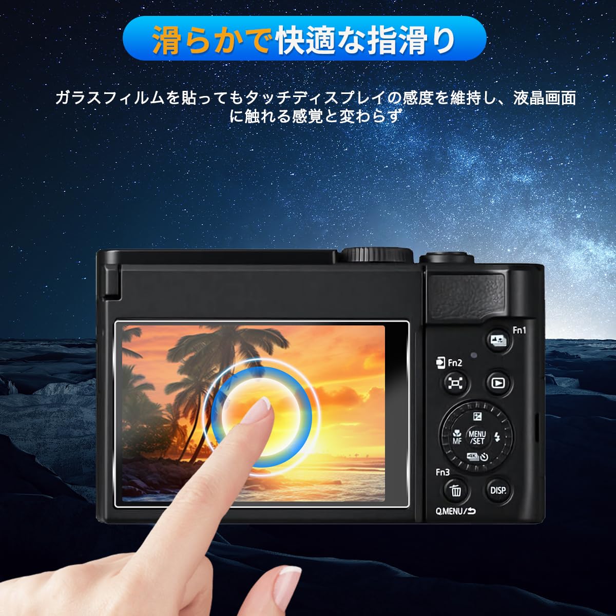 用 LUMIX TZ99 ガラスフィルム 2枚 【国産AGC旭硝子素材】 用 Panasonic LUMIX TZ99 / FZ85D / FZ1000 II / TX2 / LX100 II フィルム 全面保護 用 TZ99 保護フィルム 耐衝撃 硬度9H 用 LUMIX DC-TZ99 液晶保護フィル アクセサリー 高透過率 超薄型 飛散防止 自動吸着 気泡なし 簡単貼り付け ケースに干涉なし