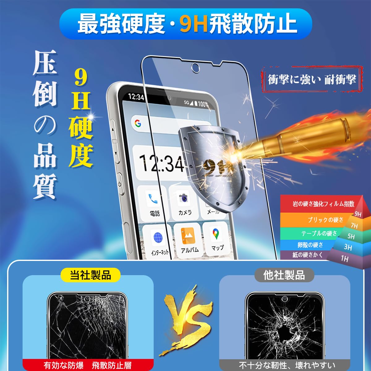 * 【国産AGC旭硝子ガラス素材 業界最高品質 硬さ9h】ガラスは硬すぎると、割れやすいです。商品は一枚一枚手作業で検査しましたので、品質は非常に安定しております,弊社のガラスフィルムは業界最高レベルの9h硬さに達しました。4.5時間以上の高温焼入れ処理を行い、スクリーンプロテクターの圧強度は125mpaに達し、通常のガラスの5 倍になりました。しかもスクリーンプロテクターは衝撃を抑えるシリコンコーティングしており、SCL緩衝層を搭載し、伝わる衝撃力を瞬時に分散させ、万が一ガラスが割れても、ガラスの破片が飛散しなく、怪我されません。