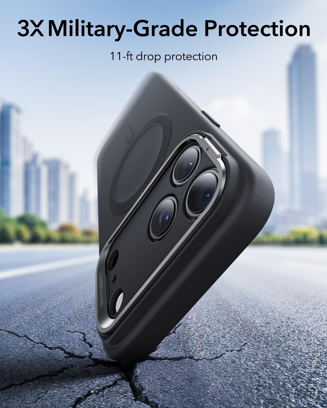 * 【耐久設計】ESR いphone17Pro ケースのプレミアムな亜鉛合金製で、スタンドは新品同様の美しさを保ち、ヒンジは3,000回以上の使用に耐えぬきます