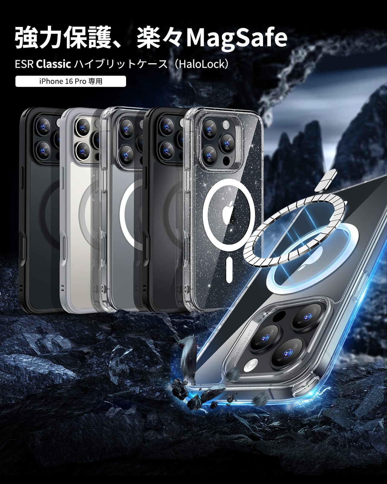 【米軍MIL規格・Magsafe対応】ESR iPhone 16 Pro ケース 傷に強い背面 ワイヤレス充電 ストラップホール付き いPhone16Pro ケース 耐黄変 耐衝撃 iPhone16pro ケースマグネットスマホケース iPhone 16pro 対応 HaloLock搭載 ハイブリッド磁気ケース クリア