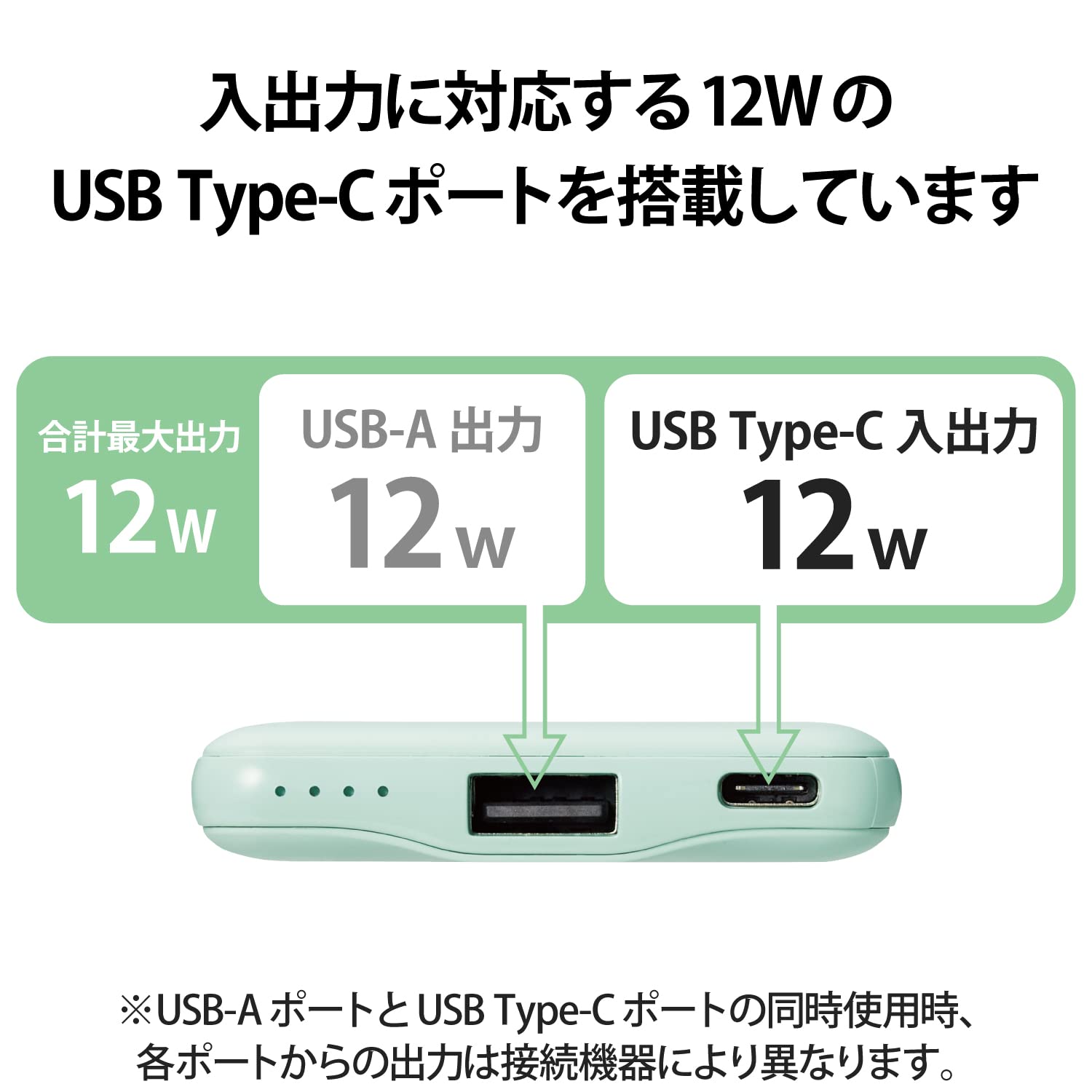 エレコム モバイルバッテリー 5000mAh 12W コンパクト 薄型 軽量 入力(Type-C×1) 出力(Type-C×1、USB-A×1) PSE認証 おまかせ充電対応 【iPhone Android 各種対応】 グリーン DE-C37-5000GN