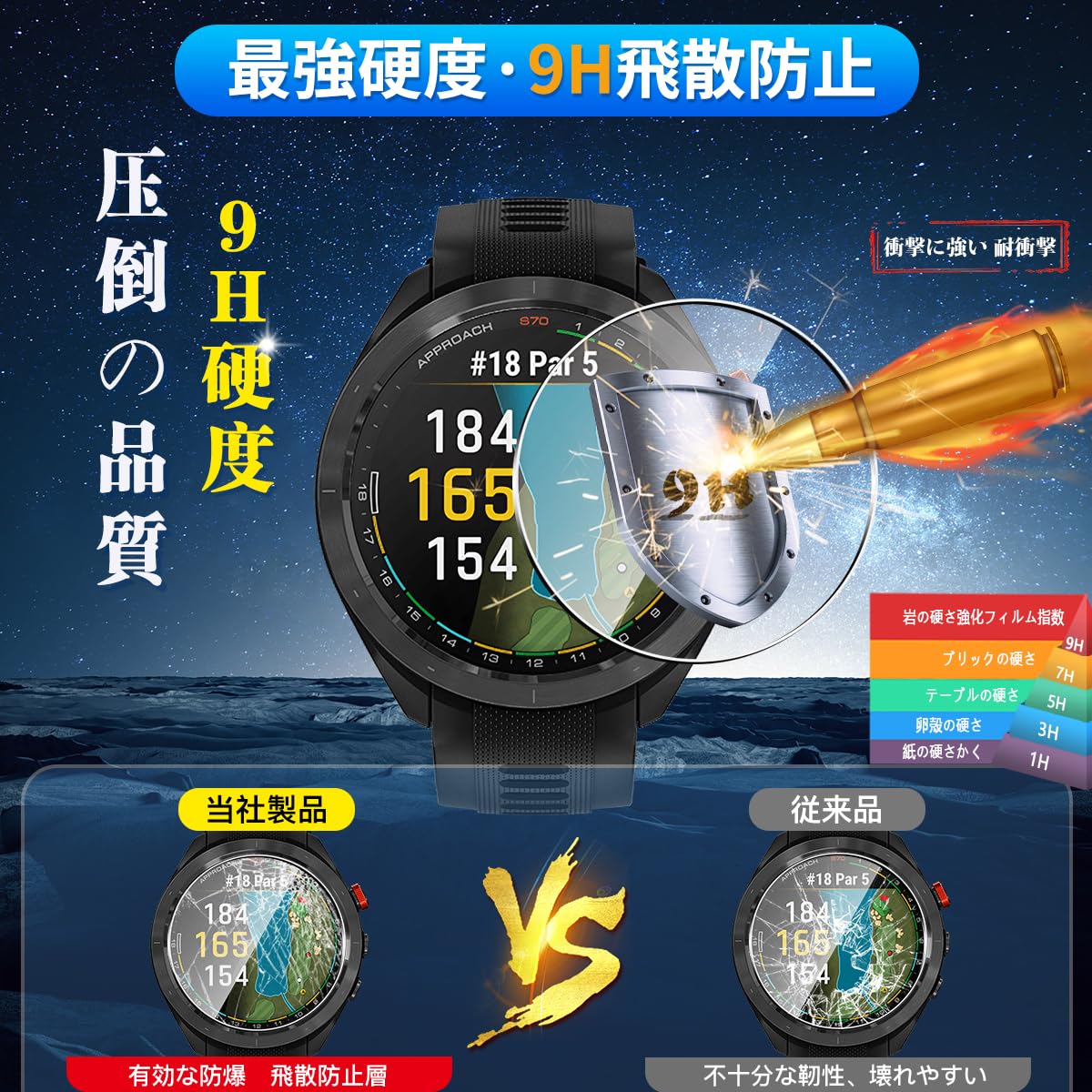 用 Garmin Approach S70 47mm ガラスフィルム 保護フィルム 【3枚セット 国産旭硝子素材】 用 ガーミンApproach S70 47MM フィルム 高透過率 超薄型 用 ガーミン ApproachS70 47MM 液晶保護シート 耐衝撃 全面保護 飛散防止 自動吸着 気泡なし 簡単貼り付け