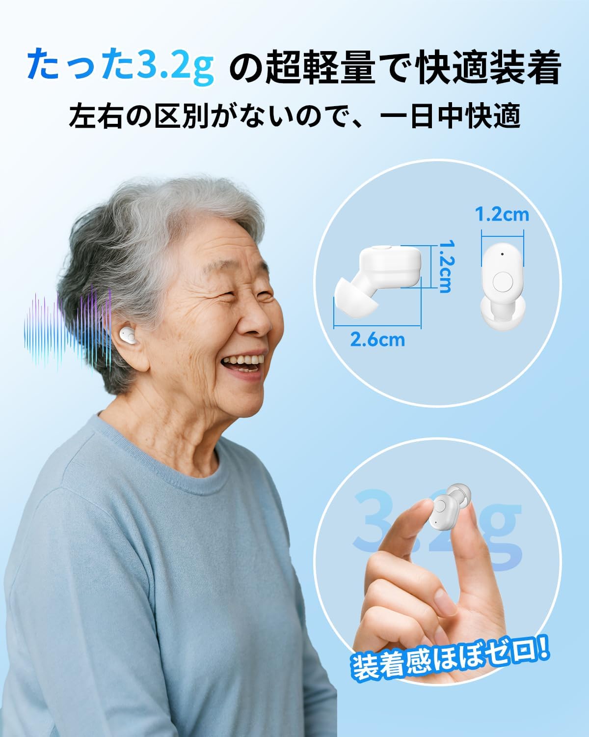 集音器 高齢者 しゅうおんき【2025年革新型 4段階音量調整 簡単操作】音声拡聴器 3.2g軽量設計 Type-C充電式 最大20-30時間連続使用可 自動電源ON/OFF 残量表示 300mah充電ケース 人間工学 疲れない 目立ちにくい 耳穴型デザイン 父の日 母の日 敬老の日 誕生日 プレゼント 贈り物 日本語取扱説明書