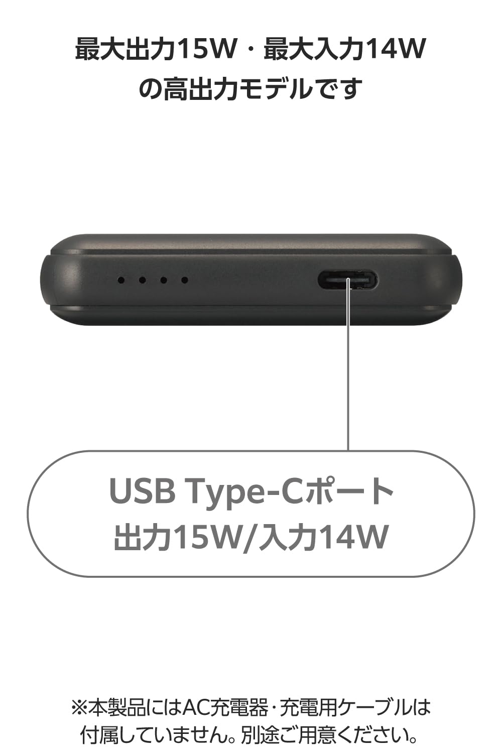 * ※5V/3AのAC充電器にUSB Type-C(TM) - USB Type-Cケーブルを接続し、製品本体のみを充電した場合の目安時間です。