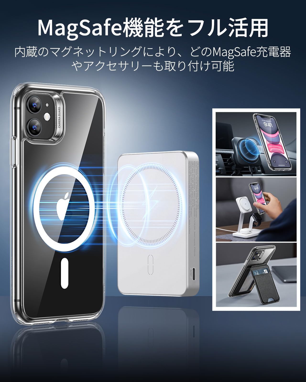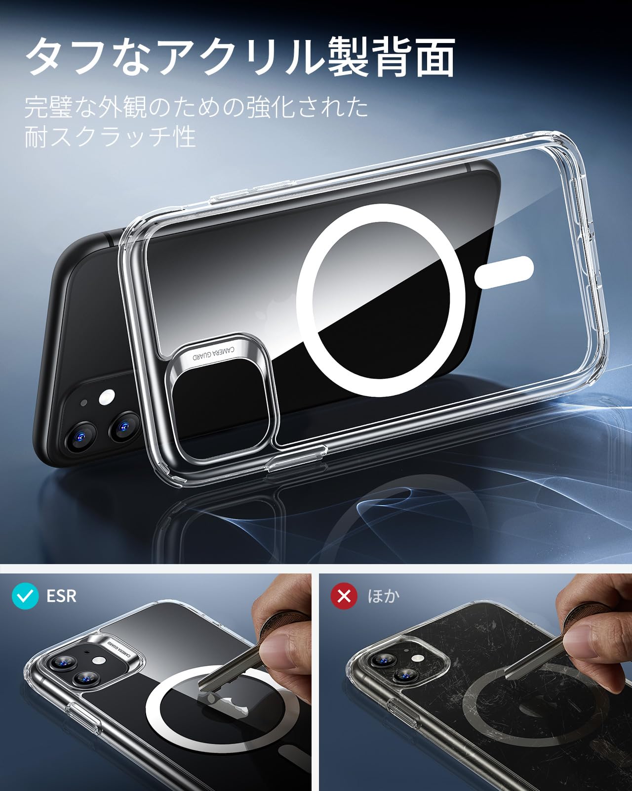 ESR iPhone11 ケース【米軍MIL規格・Magsafe対応】米軍MIL規格認証 耐衝撃 傷に強い背面 ワイヤレス充電 黄変防止 ストラップホール付き いpほね11ケース マグセーフ対応 指紋防止 滑り止め iPhone11用 6.1インチ クリア