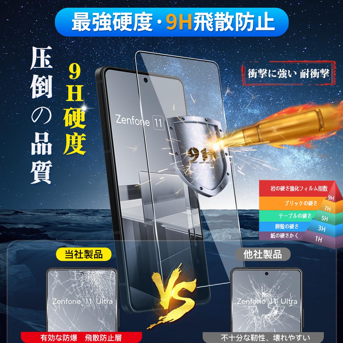 用 Zenfone 11 Ultra ガラスフィルム 2枚 【国産AGC旭硝子素材】 用 ASUS Zenfone 11 Ultra 強化ガラス フィルム 硬度9H 耐衝撃 用 Zenfone 11Ultra 保護フィルム 全面保護 用 Zenfone 11 Ultra 液晶 ガラス フィル 高透過率 超薄型 自動吸着 気泡なし 簡単貼り付け ケースに干涉なし【2枚】