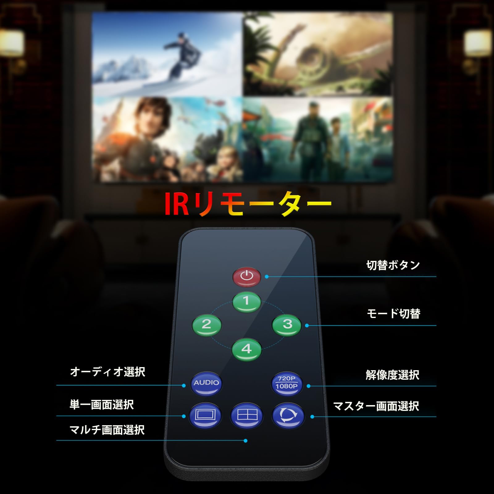 ■ 【4種の分割表示モードとIRリモコン付き】IRリモコンでパネルボタンやIRリモコンで入力信号を切り替えることができます。