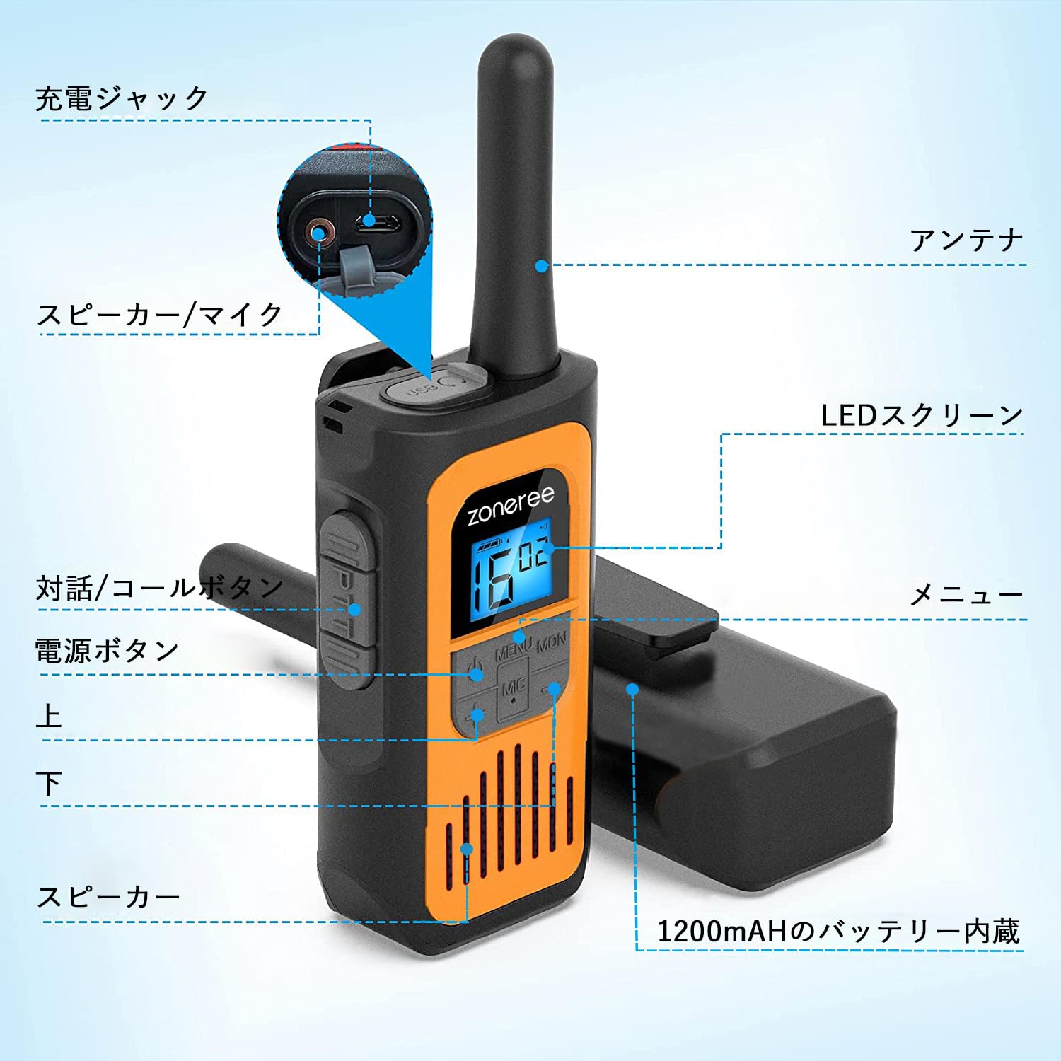 トランシーバー 無線機 特定小電力 免許不要 充電式 簡単操作 災害·地震 緊急対応 1200mAH リチウムイオンバッテリー・USB充電ケーブル・イヤホンマイク・ベルトクリップ付属 4台セット