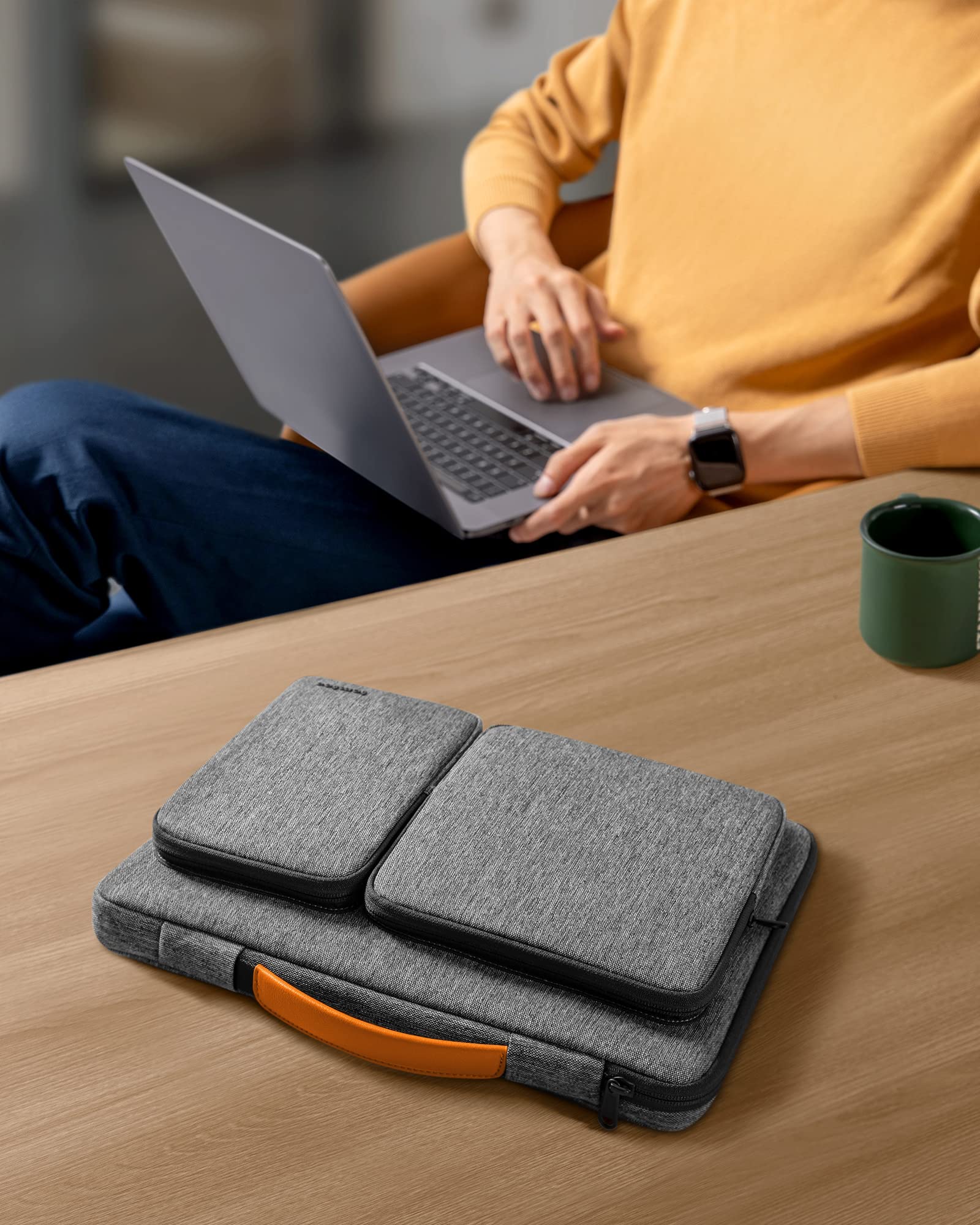 tomtoc 360度保護 13.3-14.5インチ PCケース 14インチ MacBook Pro M5-M1 2025-2021対応 13.3 14インチ NEC Lenovo Surface HP DELL 富士通 Dynabook パナソニック ASUS対応 ノートパソコンケース ビジネスバッグ 通勤 通学 就活 グレー