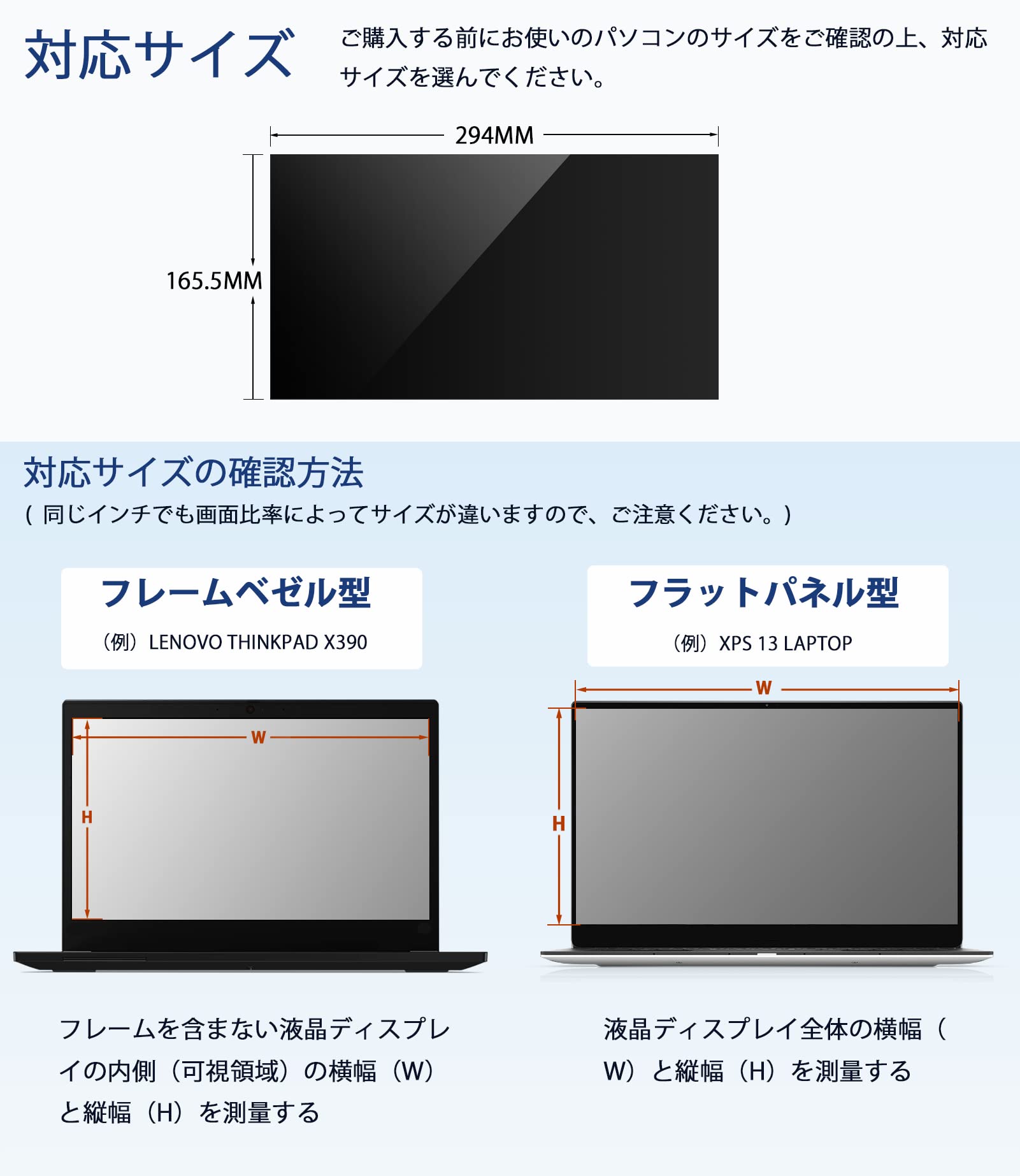 * 【対応機種】16:9 13インチ(294×165.5㎜)のパソコンが対応できます。詳細の測定方法は商品画像3枚目をご参照ください。【12ヶ月安心保証サービス】弊社は12ヶ月の安心保証を提供して、商品に何か質問がございましたら、また商品到着時、ご注文と異なる商品が届いた場合や、初期不良などがある場合、ぜひご遠慮なく、お問い合わせください。