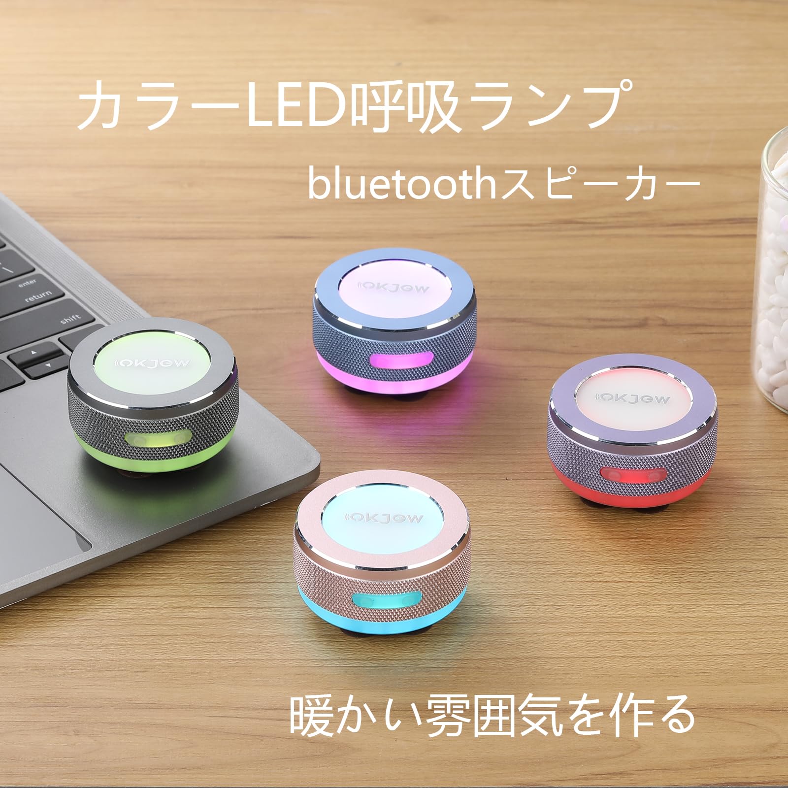 * Bluetooth接続とLEDダイナミックブリーシングライト: Bluetoothスピーカーとして、簡単にスマートフォンやタブレットと接続可能。さらに、LEDダイナミックブリーシングライトが内蔵されており、音楽に合わせて光が変化し、視覚的にも楽しめます。