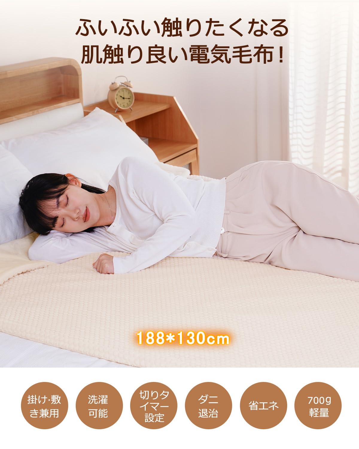 Yokimisu 電気毛布 掛け敷き兼用 クリスマス 188×130cm【2025年新登場カチオン生地&フランネル】120W速暖 10段階温度調整 9Hタイマー付き 電気掛け毛布 洗える 恒温加熱 電気敷毛布 電気ブランケット 頭寒足熱 ダニ退治 防寒対策 肩掛け 膝掛け 厚手生地 ふわふわ 両面使え 暖房器具 自宅 オフィス用 日本語取扱説明書付き (アイボリー)