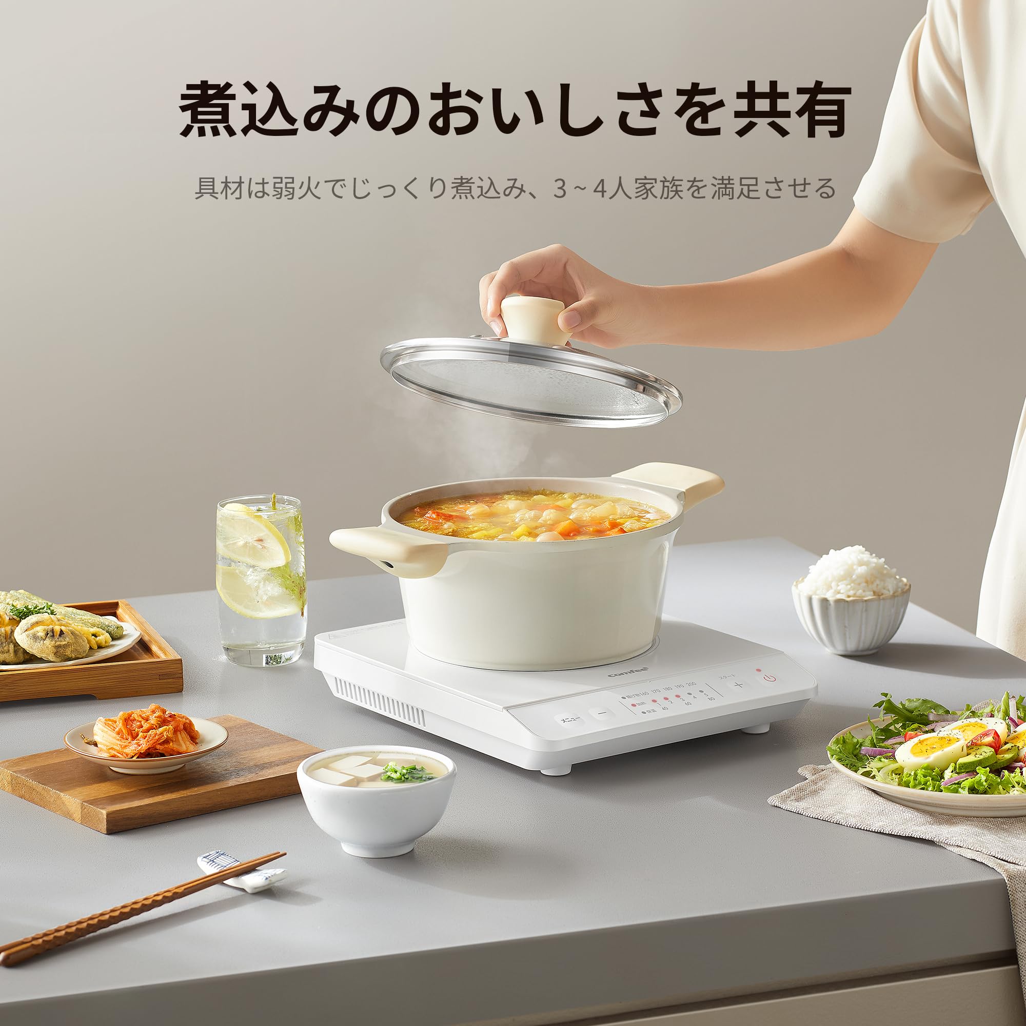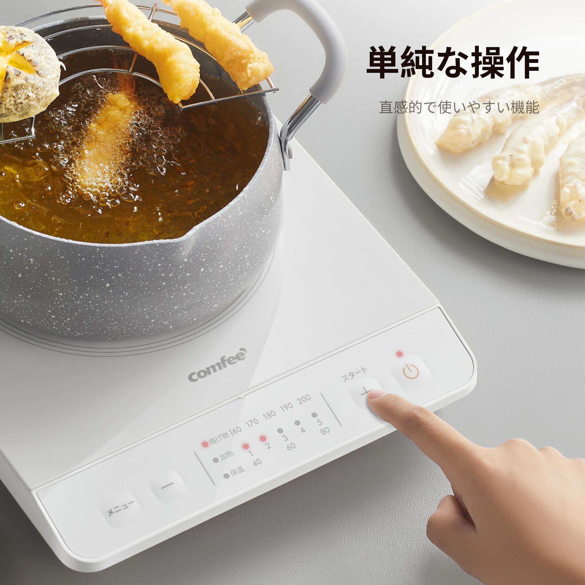 COMFEE' クッキングヒーター IH式 薄型 1000ワット 3種メニュー 揚げ物 3段保温 炒め料理 白