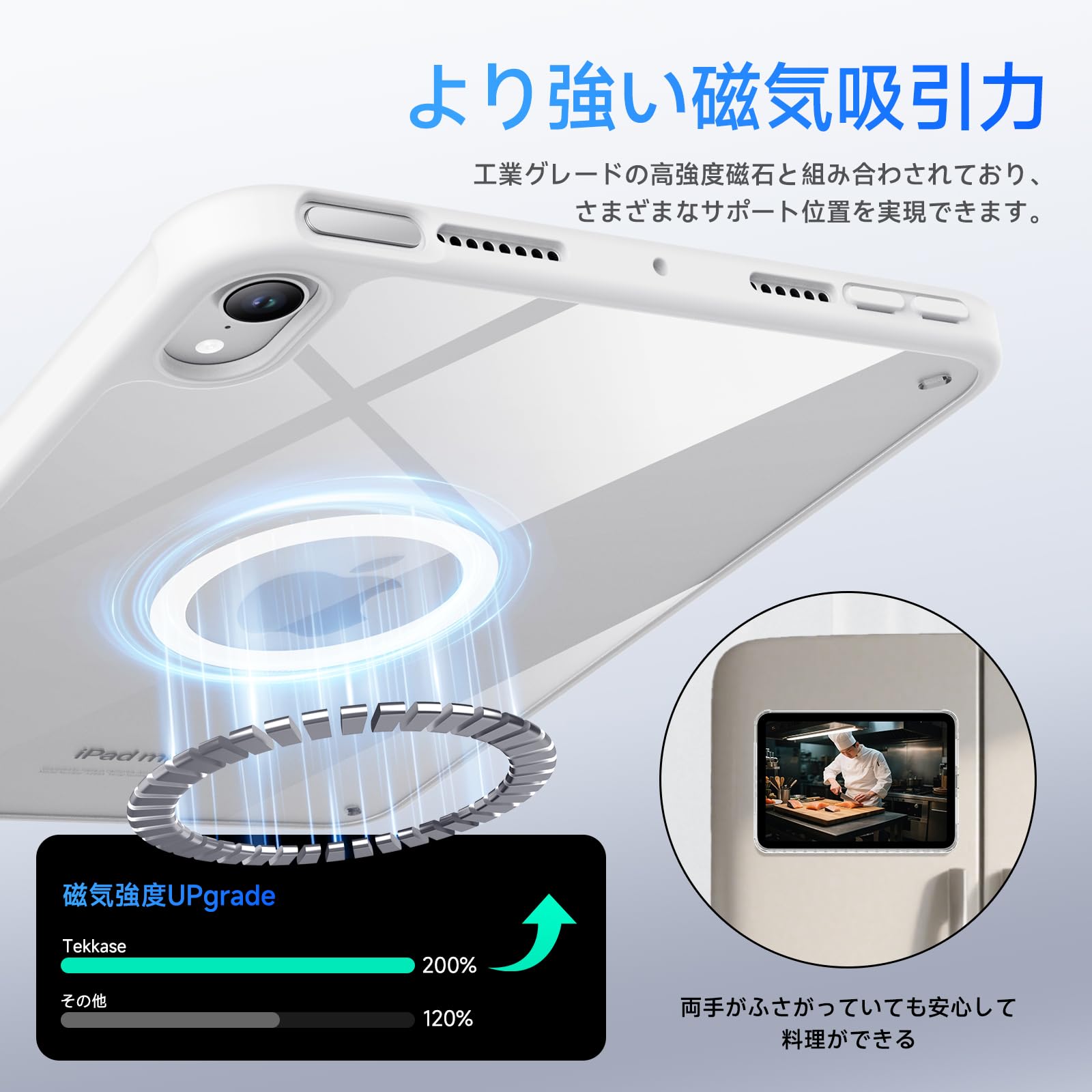 Tekkase iPad mini7 ケース MagSafe対応 iPad mini 第7世代 ケース 薄型軽量 (A17 Pro、2024) iPad mini6 透明ケース 耐衝撃 黄変防止 Pencil付着可能 着脱簡単 iPad mini7/iPad mini6(2024/2021、第7/6世代)対応 8.3インチ マグネット搭載 指紋防止 (ホワイト)