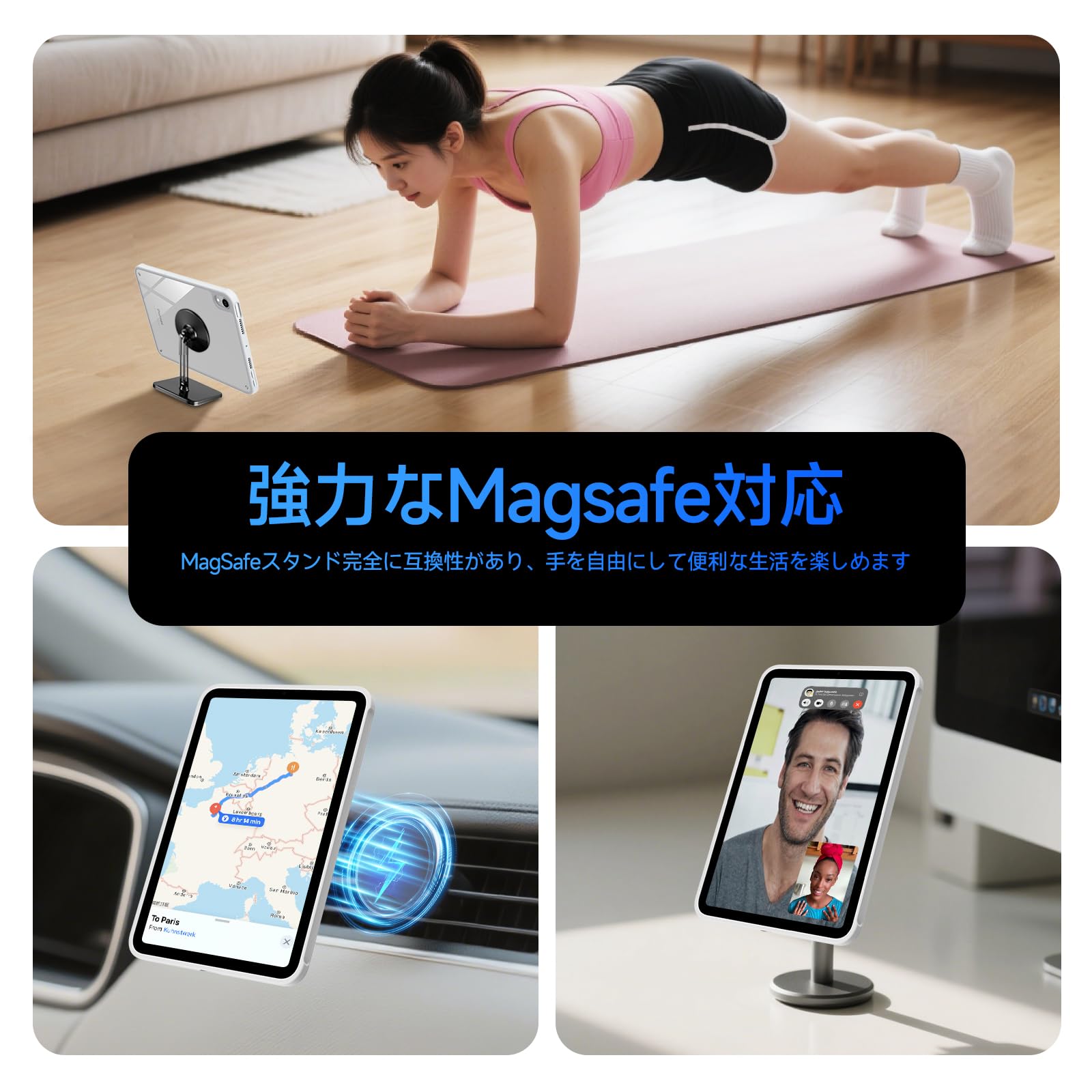 * 【より強い磁気吸引力】背面の円形強力マグネットにより、iPad mini A17 Proの重量をしっかりサポート。冷蔵庫の扉などの大きな金属面に簡単に吸着させて固定可能です。さらに、各種MagSafe対応ツール(マグネットスタンド、車載ホルダー、カードホルダーなど)との組み合わせも自由自在。両手を解放して、より便利に使えます。