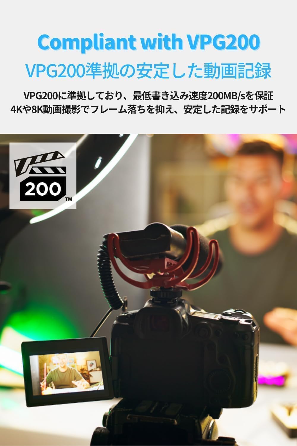 * 安定した動画記録をサポート:VGP200対応のため、最低継続書き込み速度200 MB/sが保証されています。4Kや8K動画撮影でもフレーム落ちを最小限に抑え、安定した動画記録をサポートいたします。
