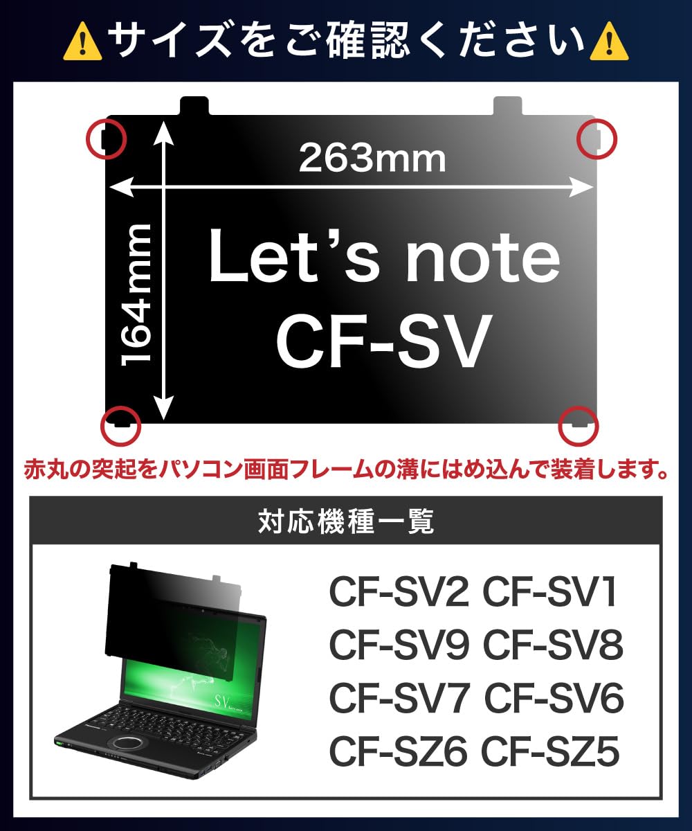 LOE(ロエ) はめ込み型 パナソニック レッツノート CF-SV/CF-SZ パソコン (個人・法人向け) 覗き見防止 保護フィルム ブルーライトカット プライバシー フィルター/Let's note CF-SV1、SV9、SV8、SV7、CF-SZ6 1枚