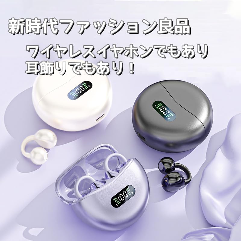 イヤホン bluetooth ワイヤレスイヤホン 【ながら聴き イヤーカフ型 】イヤフォン スポーツ用 耳挟み式 オープンイヤー 耳掛け 耳を塞がない マイク付き ENC通話 数字LEDディスプレイ残量表示 (ブラック)