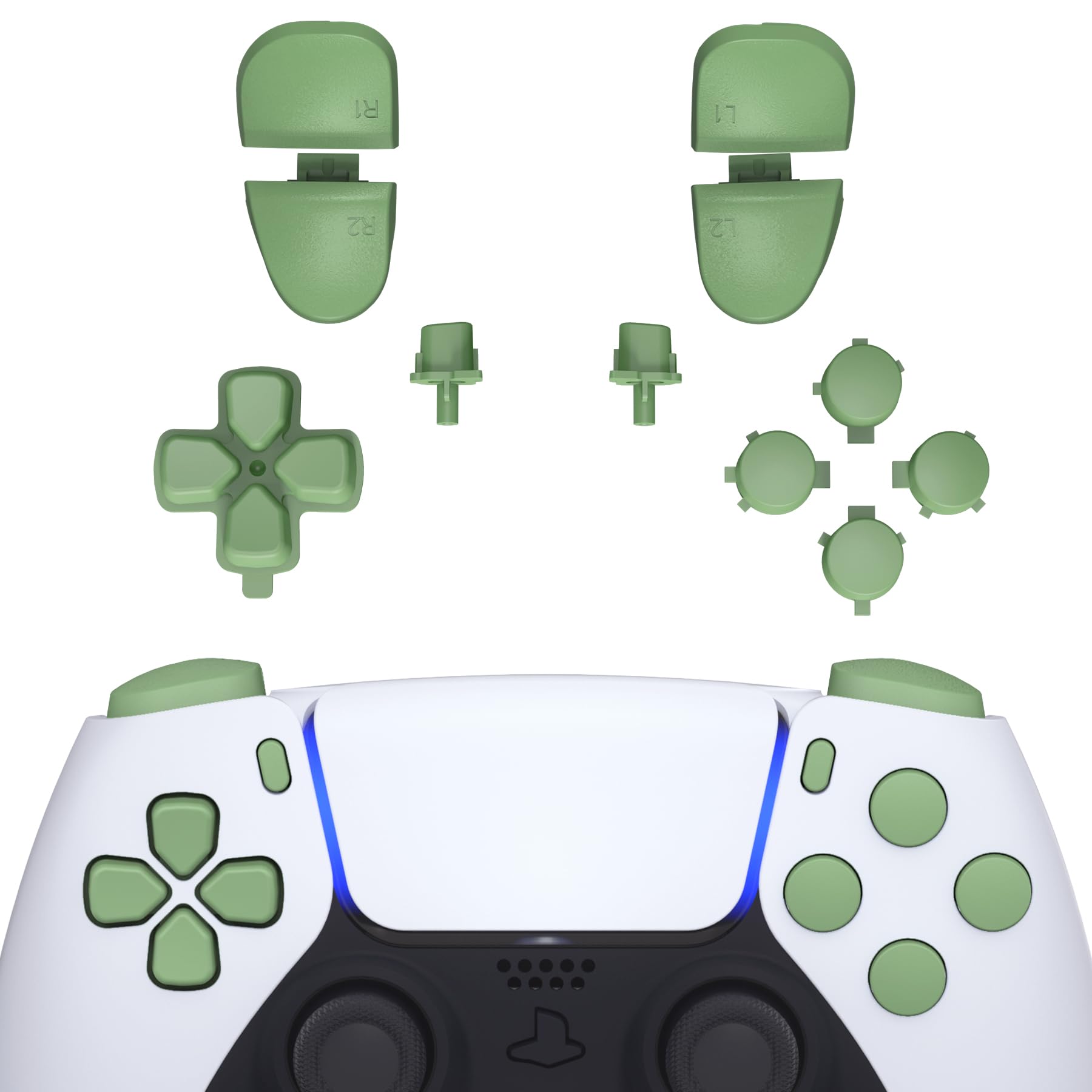 eXtremeRate ps5コントローラー(BDM-030&BDM-040&BDM-050)に対応用取り替える十字キーR1L1R2L2トリガーシェアオプションフェイスボタン、ピュアカラーps5コントローラー(BDM-030&BDM-040&BDM-050)に対応用フルセットボタン-コントローラーが含まれていません【抹茶グリーン】