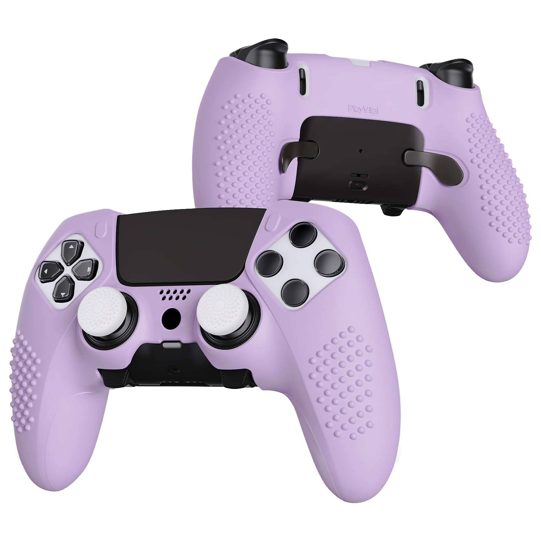 PlayVital ps5 Edgeコントローラーに対応用滑り止めシリコンカバーケース、ps5 Edge対応用ソフトラバープロテクタースキン、サムグリップキャップ付きー3Dスタッズエディション【3Dスタッズエディション-明るい紫】