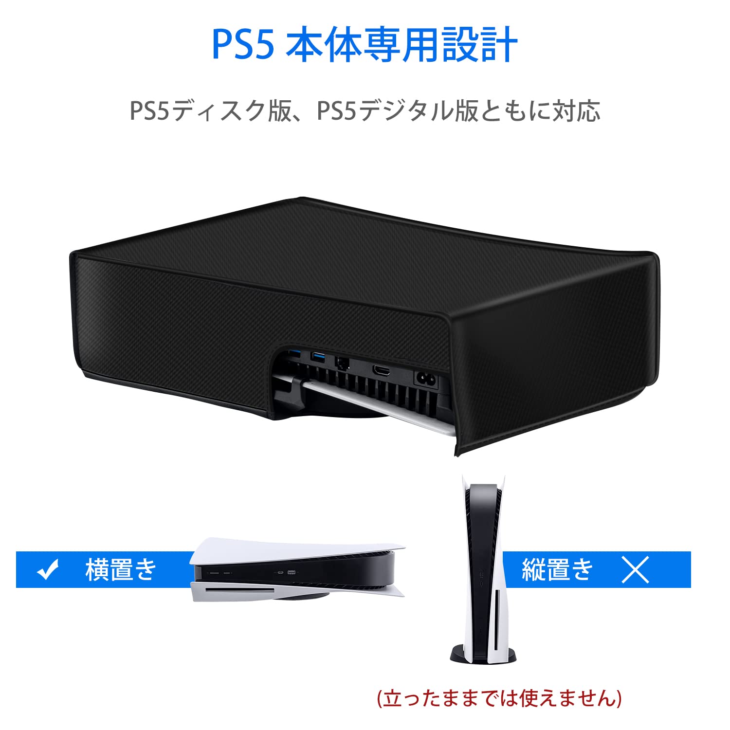 Mcbazel PS5カバー横置き ダストカバー PS5コンソール保護カバー 横式 ホコリ防止 汚れ防止 脱着簡単 PS5通常版(UHD)とデジタル版適用 -ブラック【PS5 Slimには対応しておりません】