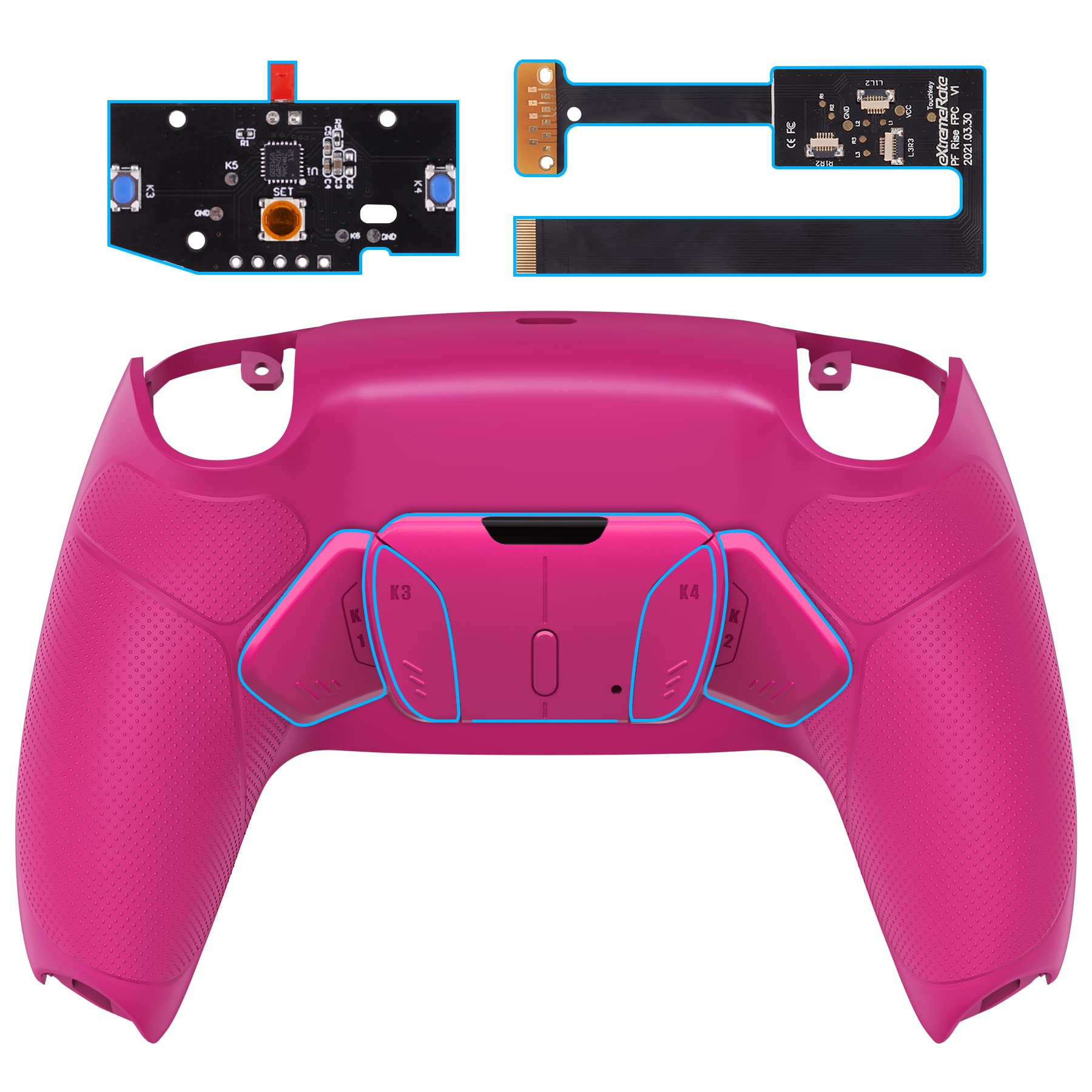 eXtremeRate ps5コントローラーBDM-010&BDM-020に対応用プログラムできる背面パドルラバーグリップ付き純色のプラスティック製RISE4リマップキット、ps5コントローラーに対応用アップグレードボードと再設計されたバックケース&背面ボタン4つ‐ps5本体ではない【ノヴァピンク】